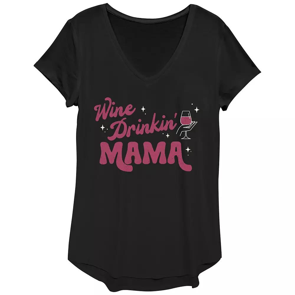 Shell love the look and feel of this Womens Wine Drinking Mama V-Neck Graphic Tee. FEATURES V-neck Short SleevesFABRIC & CARE Polyester/Rayon/Spandex Machine wash Imported Size: Large. Color: Black. Gender: female. Age Group: adult.