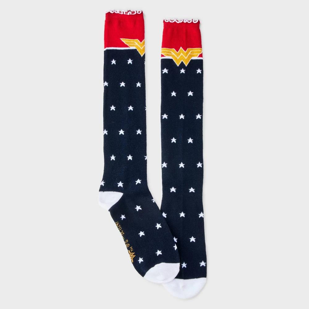 Women's Wonder Woman Lettuce Edge Americana Knee High Socks - Red/White/Navy 4-10: Polyester Spandex Knit