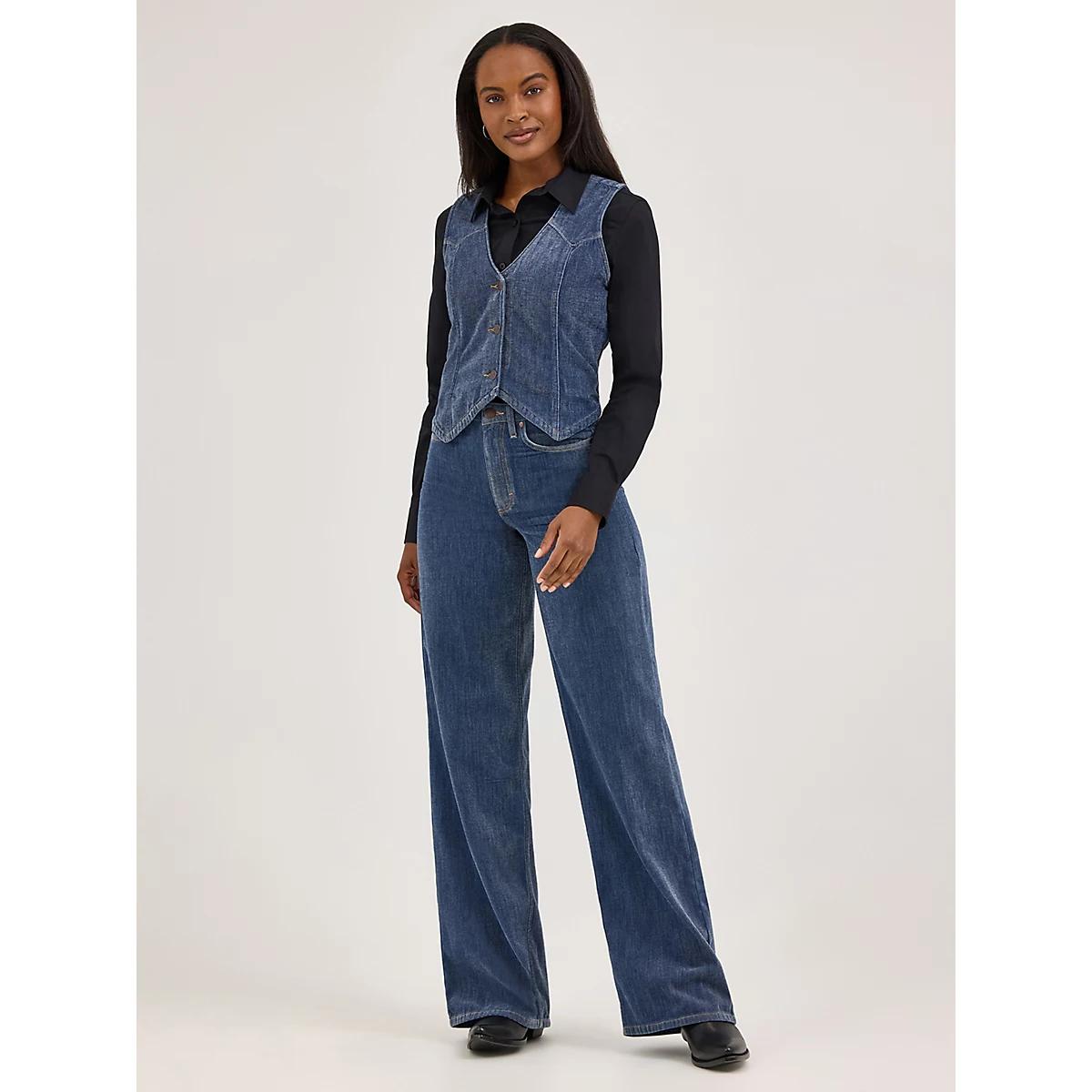 Here’s a versatile way to wear your favorite true-blue look—our Women’s Western Denim Vest. This iconic layering piece comes with a slim fit, a slightly cropped silhouette, and an angled hem across the front. Just like your favorite Wrangler® tops, it features the single-point yokes from front to back and antiqued hardware to complete the look in authenticity.