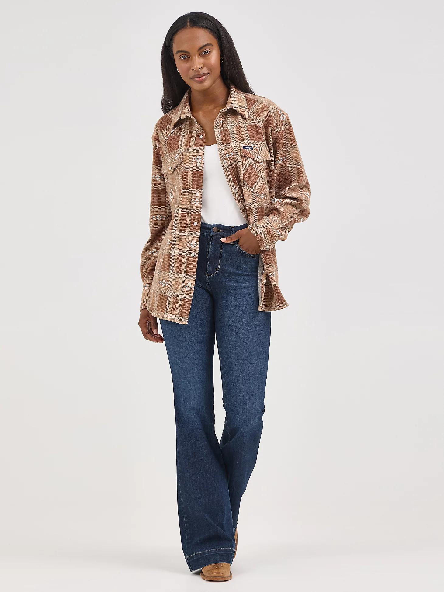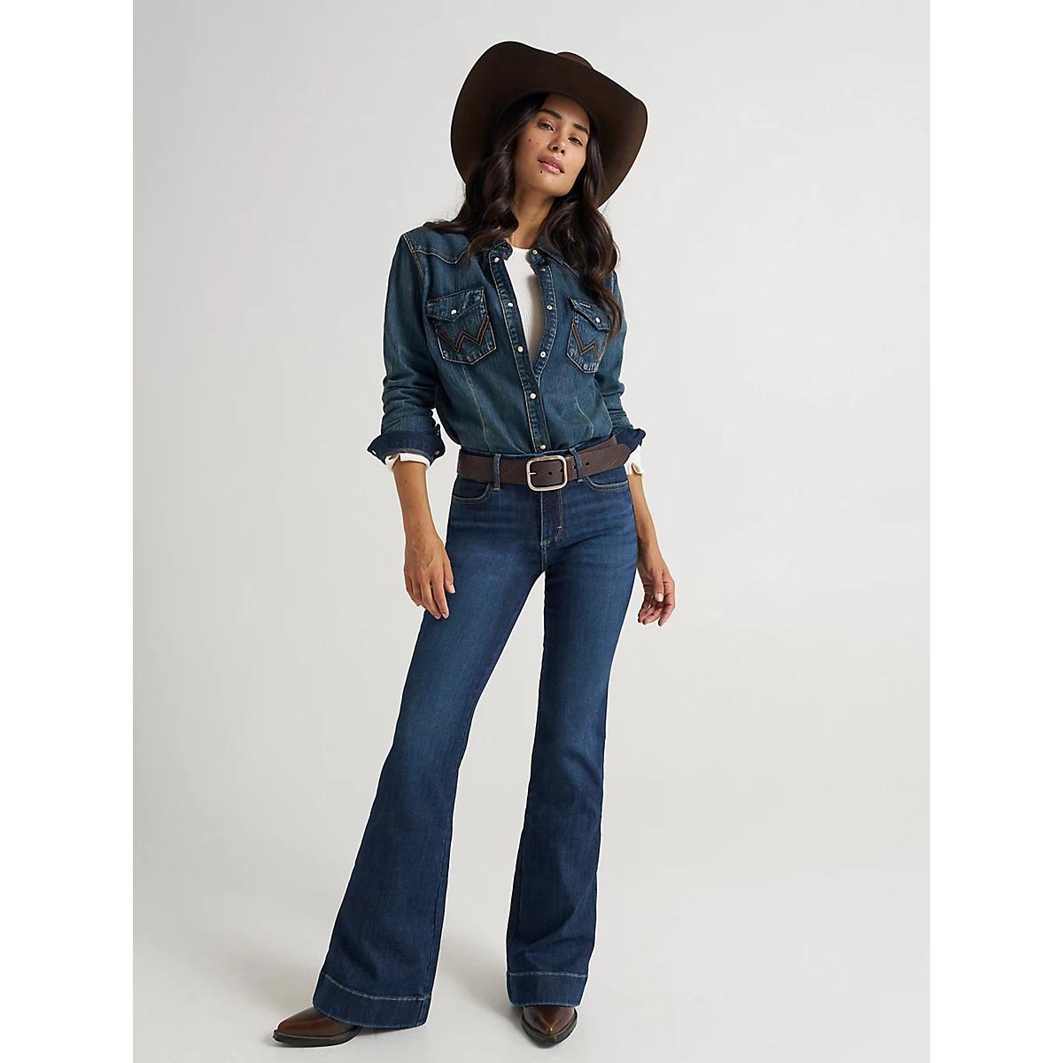 You deserve a fit that complements your every curve, which is exactly what the Women's Wrangler® Bespoke High Rise Trouser Jean was made to do. These denim trousers are crafted from a comfortable cotton blend featuring superior stretch, with innovative details specifically made to show off your shape. From the high-rise silhouette to a slim fit through the thigh and the vintage-inspired volume below the knee, these jeans will own the moment. Plus, they’re finished with our signature five-pocket styling, the ‘W’ stitching across the pack pockets, and a rope logo patch to let everybody know we’ve got your back.