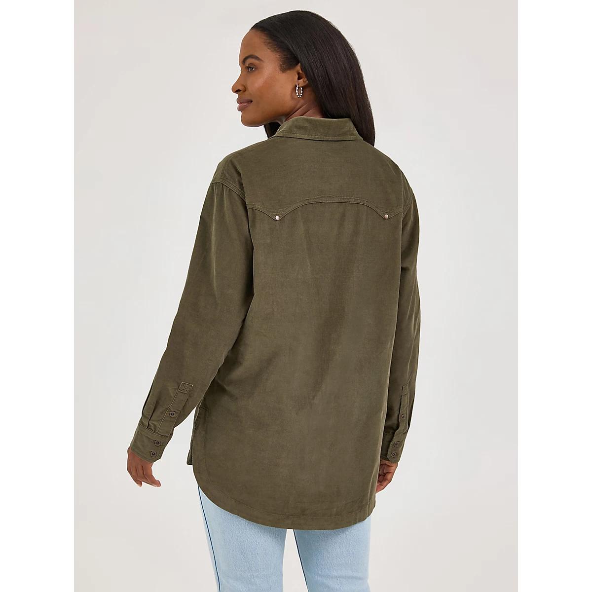 NOT YOUR BOYFRIEND’S SHIRTHere’s one less shirt you’ll have to steal from your boyfriend’s closet. Made from 100% cotton corduroy, the Wrangler Retro® long-sleeve corduroy Western snap boyfriend shirt is the perfect cozy addition to any layered look. Complete with pointed front and back yokes, Western-inspired chest flap pockets, and a pearl snap closure, this oversized snap shirt is perfect for snuggling up by the bonfire, or the by the fireplace at home.