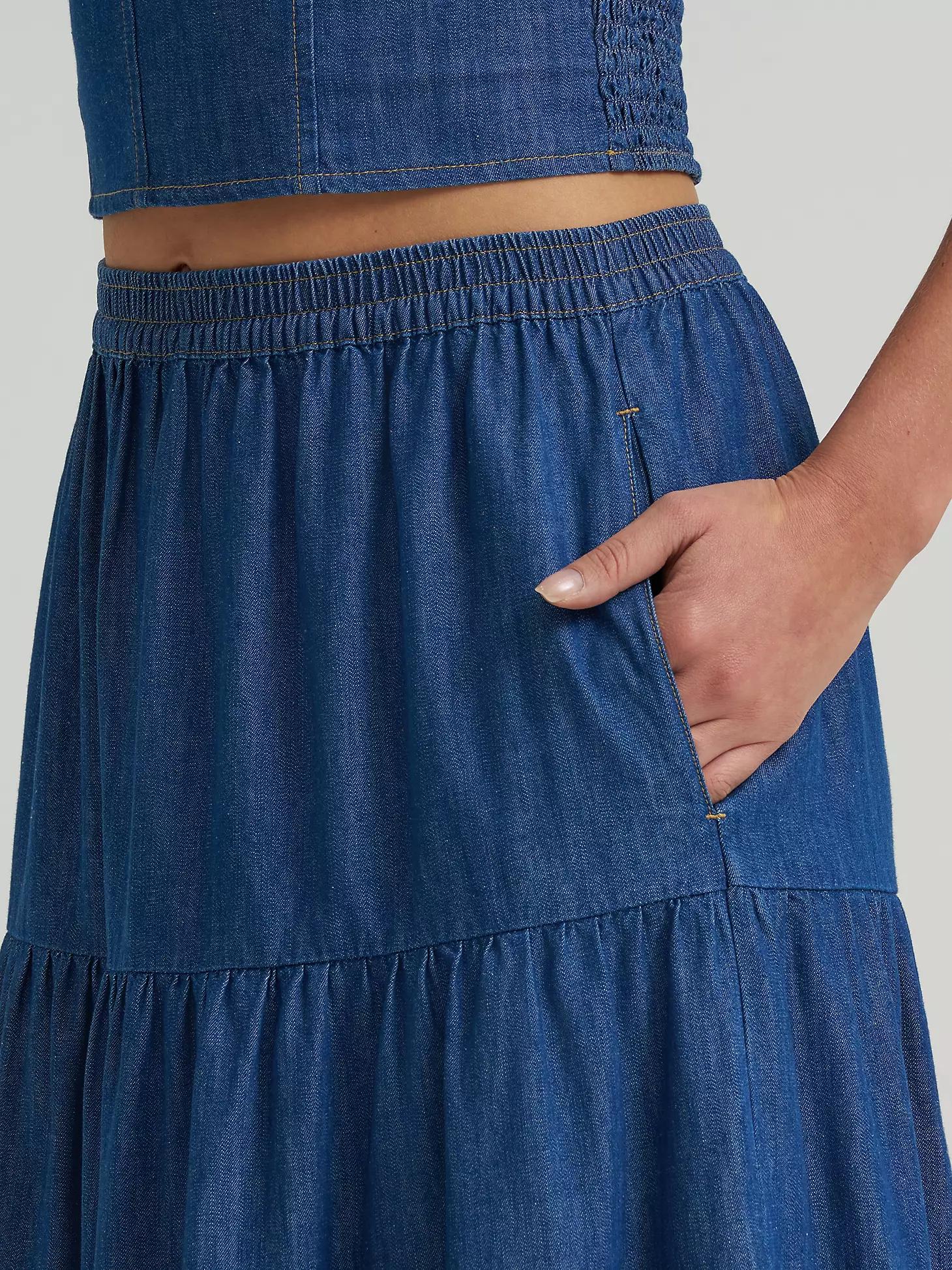 Women's Wrangler Denim Tiered Maxi Skirt in Dark Denim