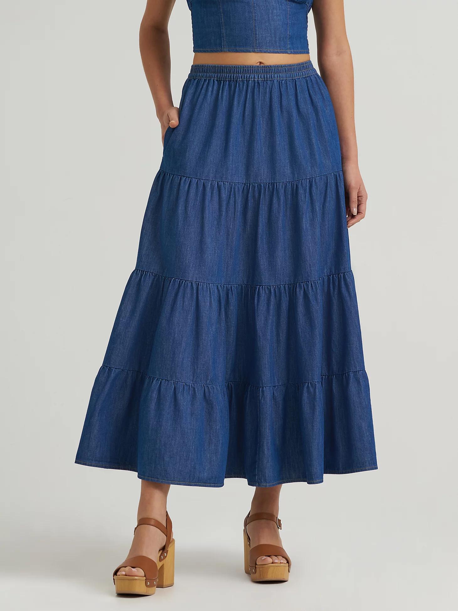Shop the Women's Wrangler Denim Tiered Maxi Skirt on Wrangler.com, the official website for Wrangler SHORTS & SKIRTS and all your favorite Wrangler women's apparel.