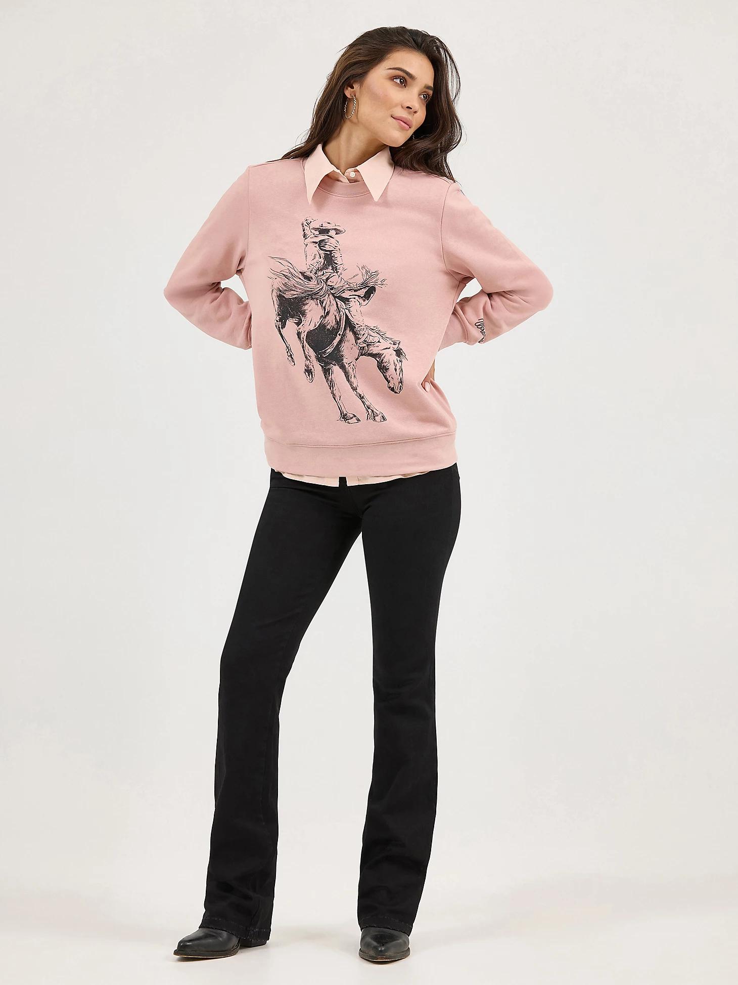 With cool weather on the horizon, this graphic crewneck sweatshirt will keep you comfy in true cowgirl style. It’s crafted from brushed terry, a soft cotton blend for warmth that won’t weigh you down. It has a regular fit that’s not too tight or too loose, just perfect for layering when you need to. Plus, you’ll have a colorful Western-inspired graphic to ground your look in authenticity.