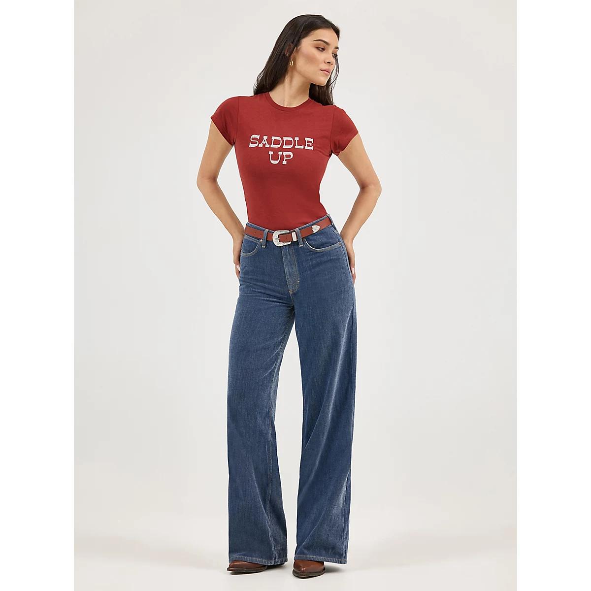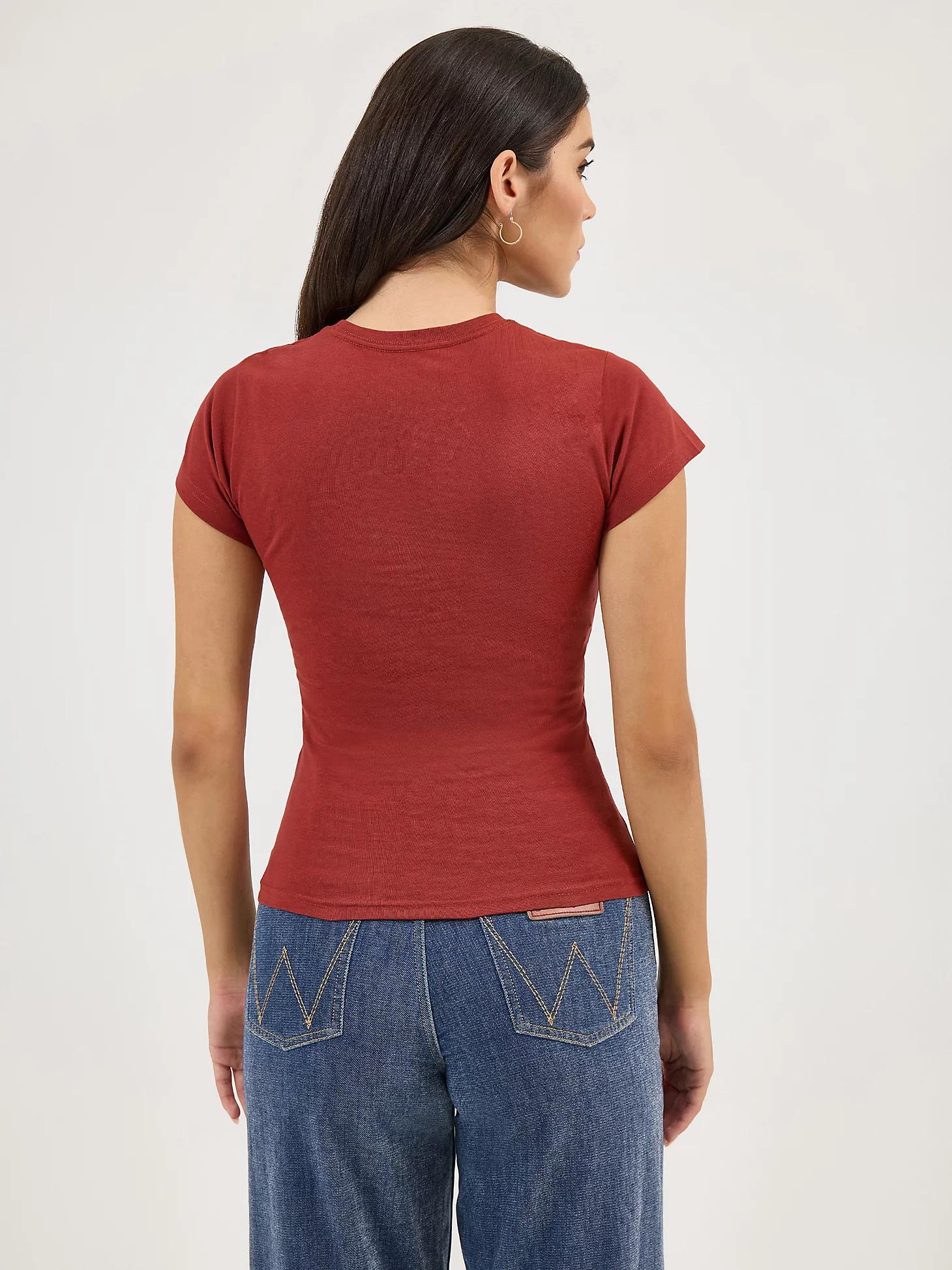 Top off your look with some extra Western attitude, starting with this shrunken tee. It’s crafted from cotton for comfort and softness that only gets better the more you wear it. It features the form-fitting look and feel of a baby tee, with a slim silhouette that hugs your shape. This tee also comes with a bold graphic print that’s perfect for a cowgirl ready to take the town by storm.