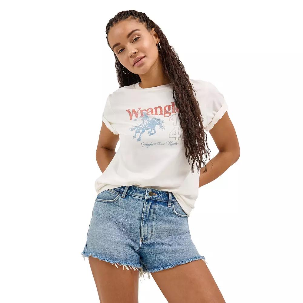 Piece together a look youll love with this womens Wrangler graphic tee.Finding the perfect fit and size for womens clothing requires basic measurements of your chest, waist, hips and inseam. Use this guide to learn more about sizing and everything Kohls has to offer in womens fashion. Piece together a look youll love with this womens Wrangler graphic tee.Finding the perfect fit and size for womens clothing requires basic measurements of your chest, waist, hips and inseam. Use this guide to learn more about sizing and everything Kohls has to offer in womens fashion. Crewneck Short sleeves Jersey constructionFABRIC & CARE Cotton, polyester Machine wash Imported Size: Small. Color: Antique White. Gender: female. Age Group: adult.