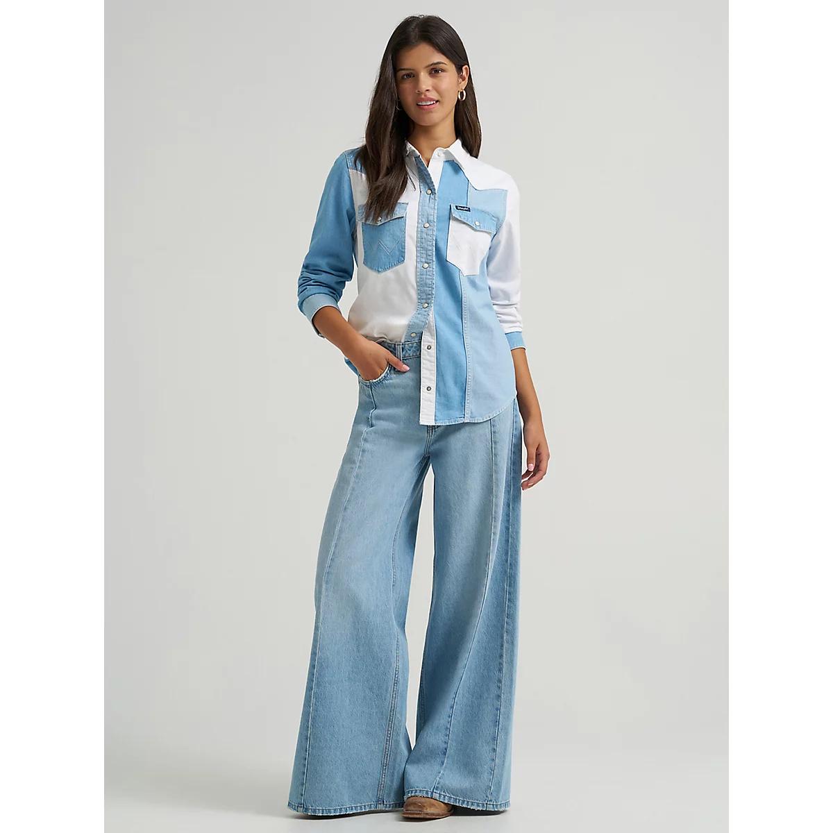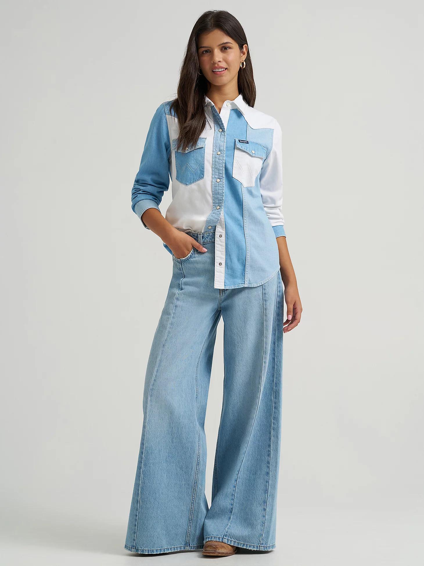 Women's Wrangler Pieced Denim Vintage Fit Snap Shirt in Denim