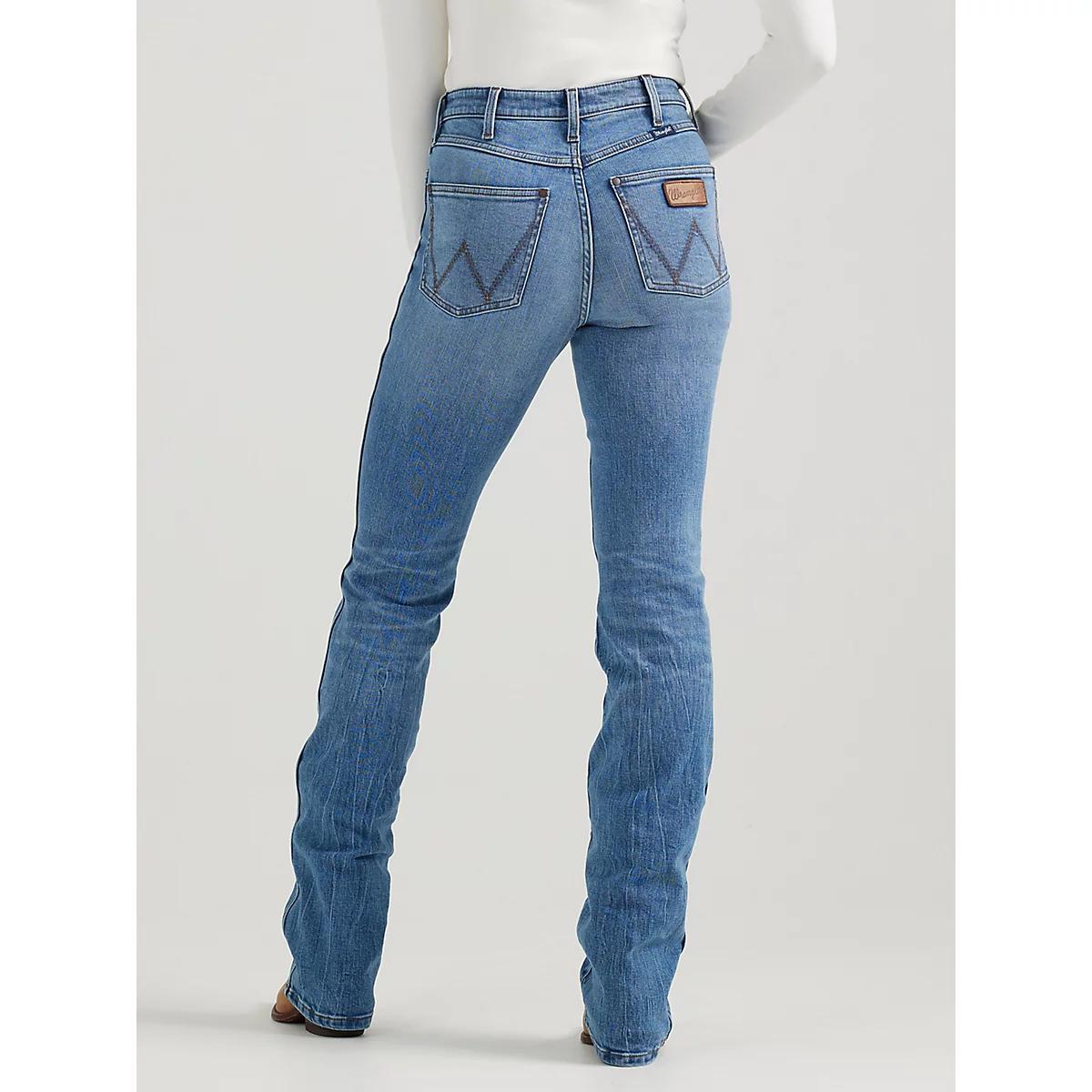 EVERY COWGIRL’S GO-TOTrends may come and go, but the bootcut is forever. Our Women’s Wrangler Retro® Bailey High Rise Bootcut Jean sets the bar high with a waist-nipping silhouette, a close fit through the thigh, and a slightly flared 17” leg opening that goes perfectly over boots. It’s crafted from cotton with just a subtle amount of stretch for comfort. Plus, the signature five-pocket styling, “W” stitching, and rope logo patch deliver the Western authenticity you want.