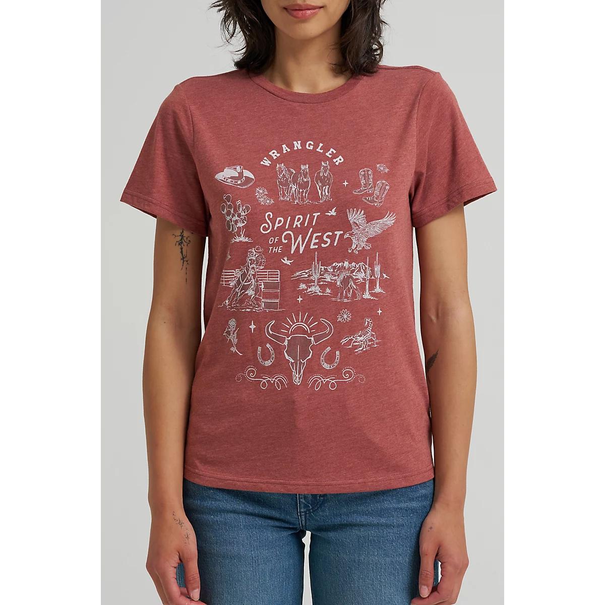 YOUR LOOK’S GOING WESTInfuse some wanderlust into your everyday look with our Women's Wrangler Retro® Western Graphic Regular Fit Tee. The Wild West reigns supreme in this t-shirt's graphic print and the Wrangler® logo adds a touch of authenticity. This classic crewneck is crafted from a comfortable cotton blend you can easily wear all year long.