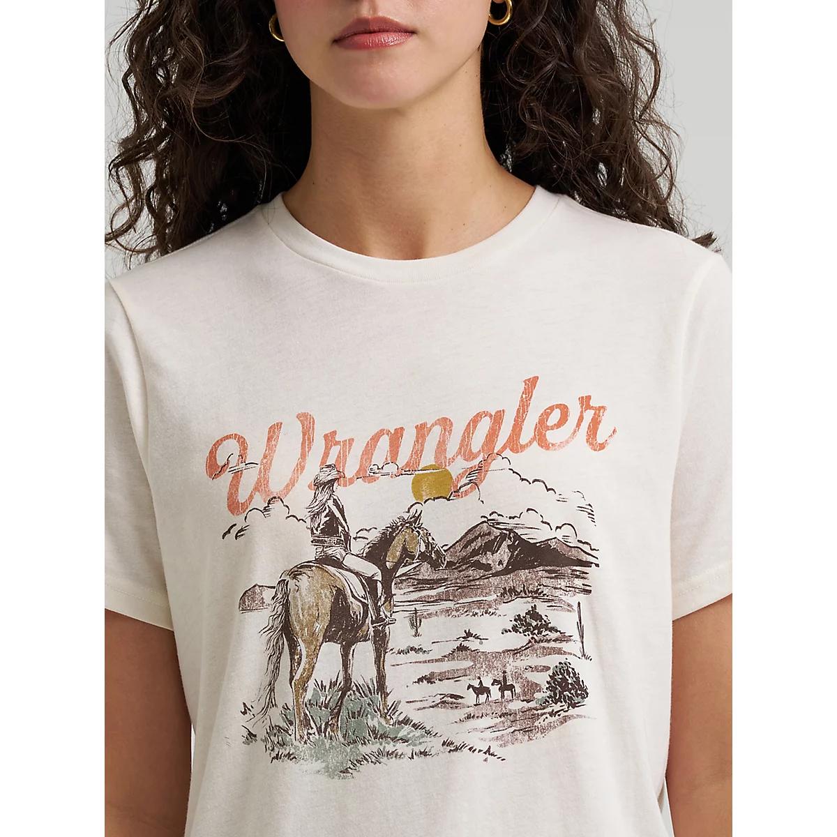 YOUR LOOK’S GOING WESTInfuse some wanderlust into your everyday look with our Women's Wrangler Retro® Western Graphic Regular Fit Tee. The Wild West reigns supreme in this t-shirt's graphic print and the Wrangler® logo adds a touch of authenticity. This classic crewneck is crafted from a comfortable cotton blend you can easily wear all year long.