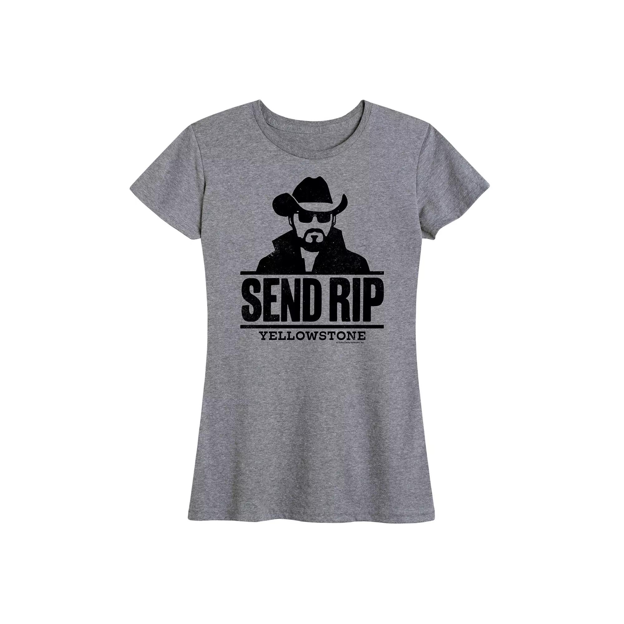 Heather Gray Yellowstone Send Rip Relaxed-Fit Tee - Women & Plus. Support your favorite drama series with this graphic tee boasting breezy short sleeves and a soft cotton blend.Full graphic text: Send Rip. Yellowstone.Size S: 26 long from high point of shoulder to hem50% cotton / 50% polyesterMachine wash; tumble dryImported, screen printed in the USA