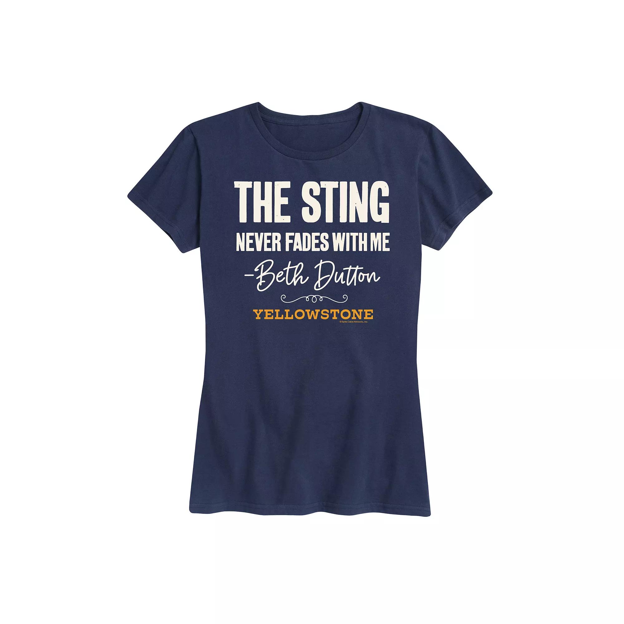 She will love showing off her style with this Womens Yellowstone Sting Never Fades Graphic Tee. FEATURES Short sleeves CrewneckFABRIC & CARE Solid Color: Cotton ; Heather Colors: Cotton/Polyester Machine wash Imported Size: Xxl. Color: Med Blue. Gender: female. Age Group: adult.
