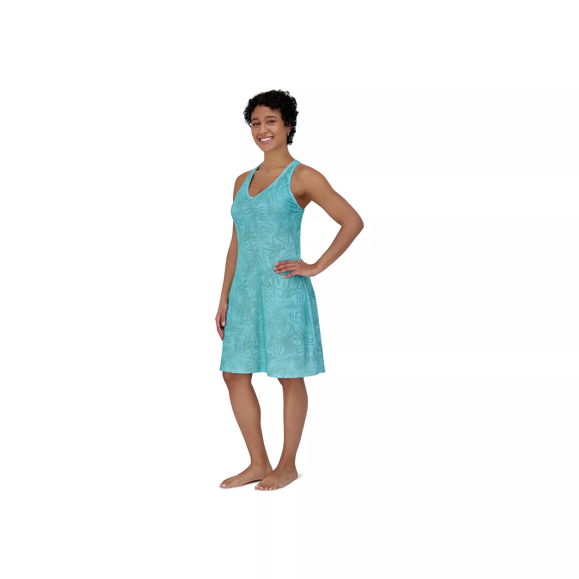 This Venture Active Dress hits above the knee in length and has wide comfortable straps and a flattering A-line shape.Click on this WOMEN'S GUIDE to find the perfect fit and more!This Venture Active Dress hits above the knee in length and has wide comfortable straps and a flattering A-line shape.Click on this WOMEN'S GUIDE to find the perfect fit and more!FEATURES Fit & flare silhouette V-neck Sleeveless Built in shelf bra, including removable soft cups for coverage No closure - pullover styling 2 pockets Straight hem Partially linedFIT & SIZING 38 1/2-in. length from shoulder to hem Mini length hits at the thighFABRIC & CARE Polyester, spandex Lining: 90% recycled polyester, 10% spandex Machine wash and tumble dry low ImportedRESPONSIBLE Contains recycled polyester Size: Medium. Color: Aqua Flail. Gender: female. Age Group: adult.