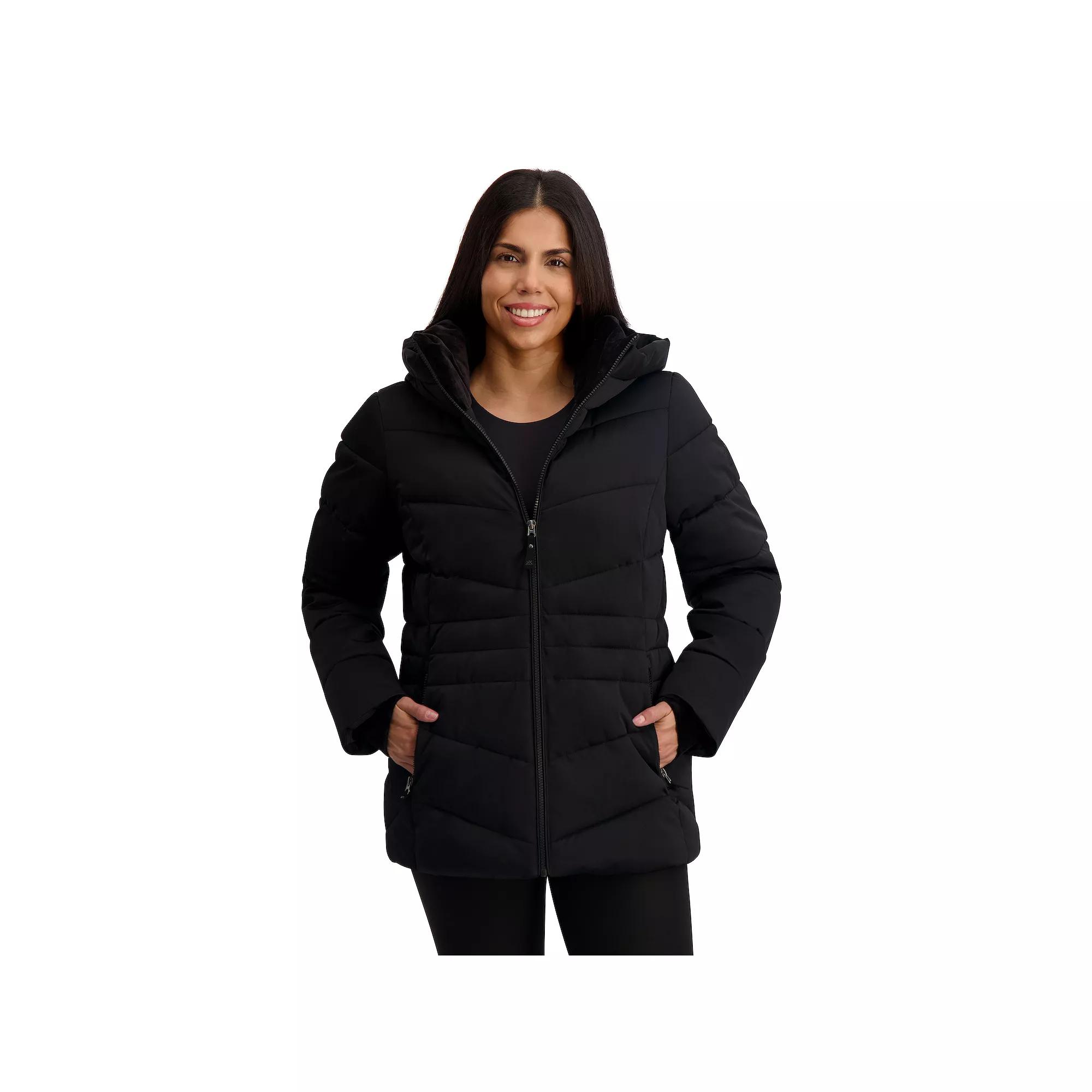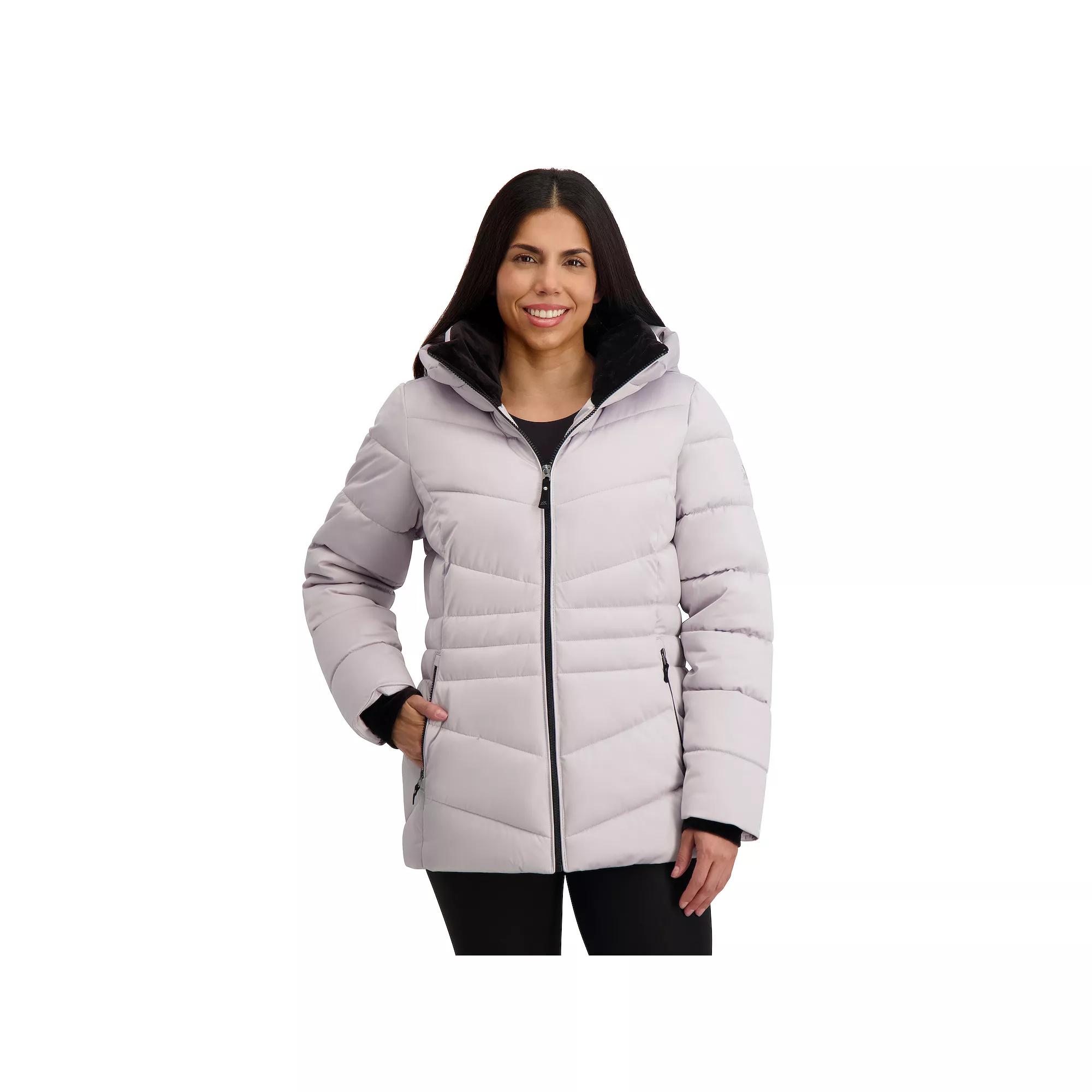 Stay warm and stylish with this chic puffer from ZeroXposur, designed with a luxurious touch and cozy velour lining. Featuring an attached hood, convenient front zipper pockets, and soft storm cuffs, this coat seamlessly combines functionality and comfort for your winter adventures. Click on this WOMEN'S GUIDE to find the perfect fit and more! - https://www.kohls.com/feature/womens-fit-guide.jsp. FEATURES: Heavyweight warmth, Water-resistant technology. FIT & SIZE: Regular fit, Designed to hit above the knees, 28-in. length from shoulder to hem. DETAILS: Zipper front closure, Attached hood, Long sleeves, 2 Front zipper pockets, 1 inside lining pocket, Imported. MATERIAL & CARE: Polyester, Machine wash and tumble dry low. Size: Small. Color: Nightfall. Gender: female. Age Group: adult.