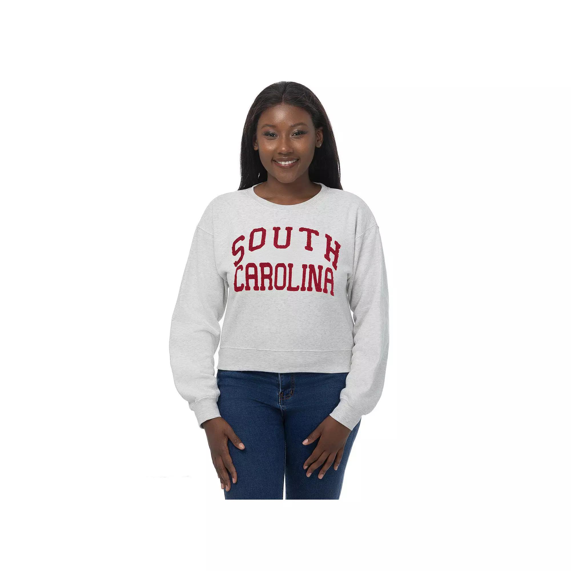 Show off your school spirit with this trendy South Carolina Gamecocks Chenille Cropped Sweatshirt from ZooZatz. The fleece lining provides added warmth and a soft feel, making it the perfect choice for those cooler game days. The embroidered chenille graphics add a touch of texture and dimension, ensuring your South Carolina Gamecocks pride stands out. Material: 76% Polyester/24% Cotton. Cropped hem. Imported. Fleece lining provides added warmth and a soft feel. Crew neck. Embroidered chenille graphics. Officially licensed. Midweight sweatshirt suitable for moderate temperatures. Pullover. Machine wash with garment inside out, tumble dry low. Long sleeve. Brand: ZooZatz. Dropped shoulder seams provide a relaxed fit for ease of movement. Size: XS. Color: Team. Gender: female. Age Group: adult.