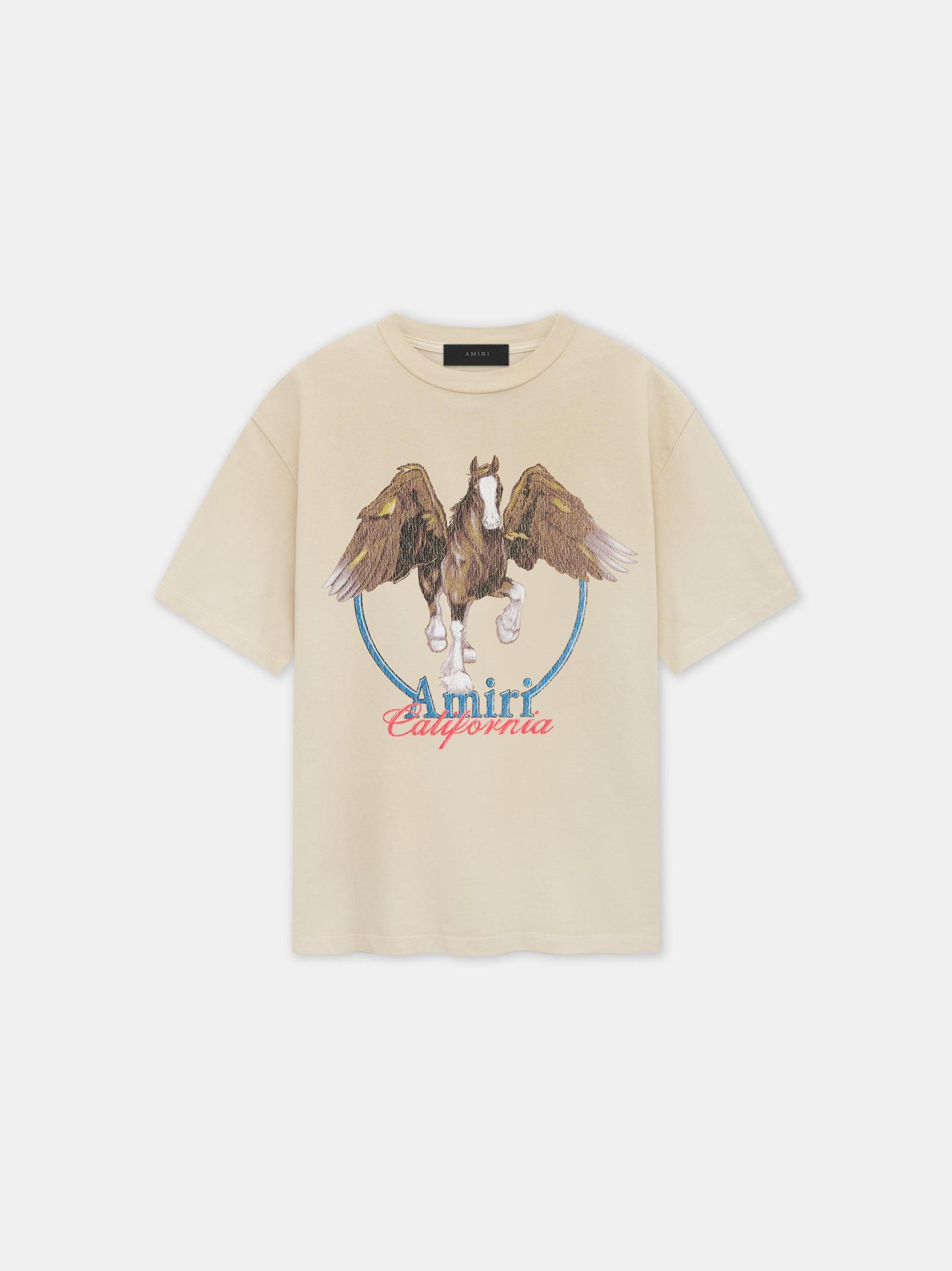 The mythical Pegasus reemerges for Pre-Spring 2025 as an emblem of California idealism. The AMIRI Pegasus Oversized Tee in cotton is illustrated with the season's pegasus graphic in a vintage-inspired distressed treatment. PRE-SPRING 2025 COLLECTION MADE IN ITALY 100% COTTON