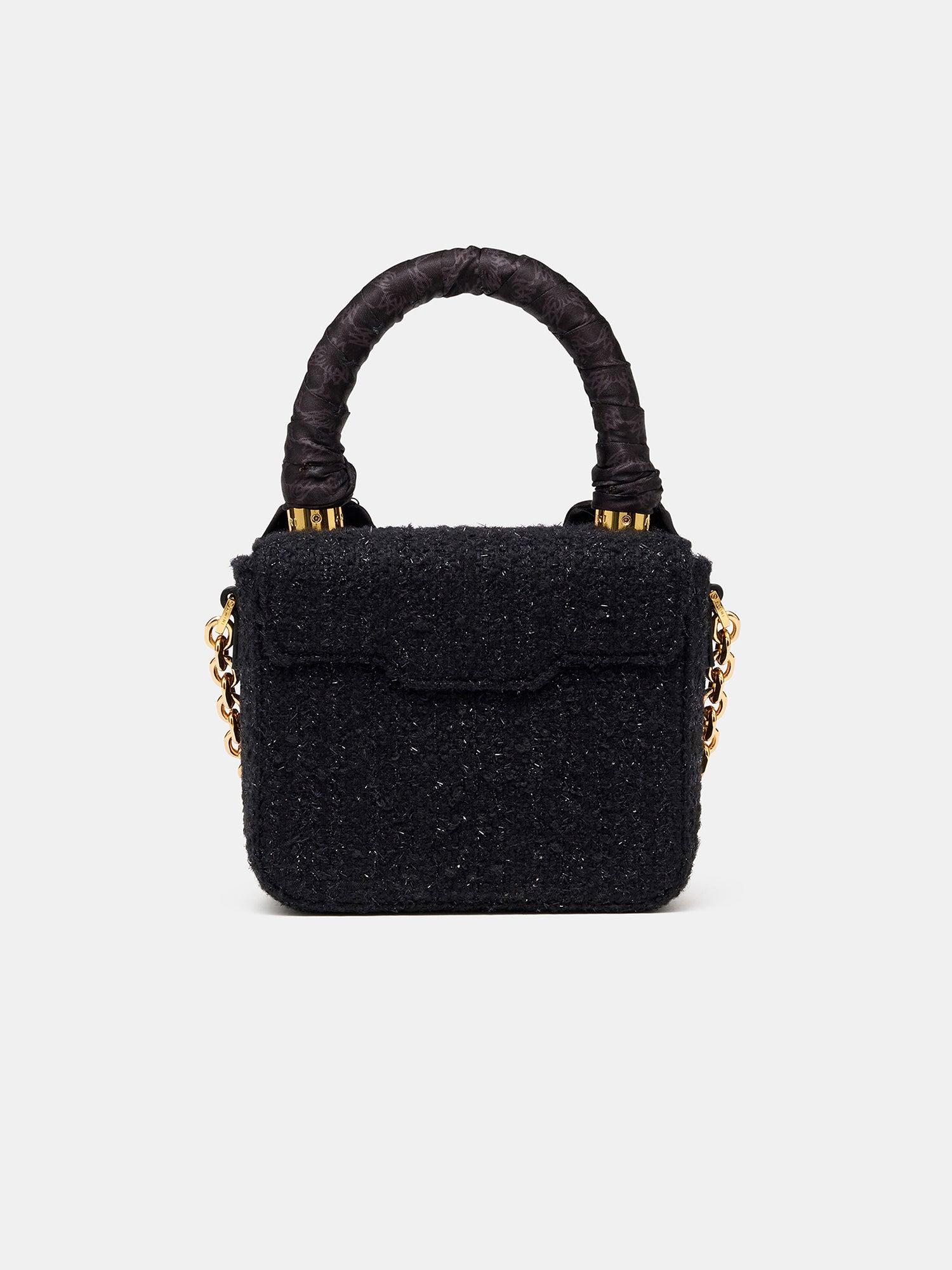 The Autumn-Winter 2025 collection continues a reimagining of heritage bouclé in house signature silhouettes. The Bouclé Micro MA Bag features magnetic closure, MA icon hardware, a top handle with tied MA Quad monogram print scarf accents, a chain handle, and a detachable shoulder strap. AUTUMN-WINTER 2025 COLLECTION MADE IN Italy 45% POLYESTER, 21% VISCOSE, 13% POLYESTER, 11% WOOL, 10% ACRYLICEACH PIECE IS METICULOUSLY CRAFTED AND INHERENTLY UNIQUE. SLIGHT VARIATIONS IN THE ARTWORK ARE A NATURAL RESULT OF THE PRINTING PROCESS AND CONTRIBUTE TO THE DISTINCTIVE CHARACTER OF THIS PRODUCT. FINAL SALE