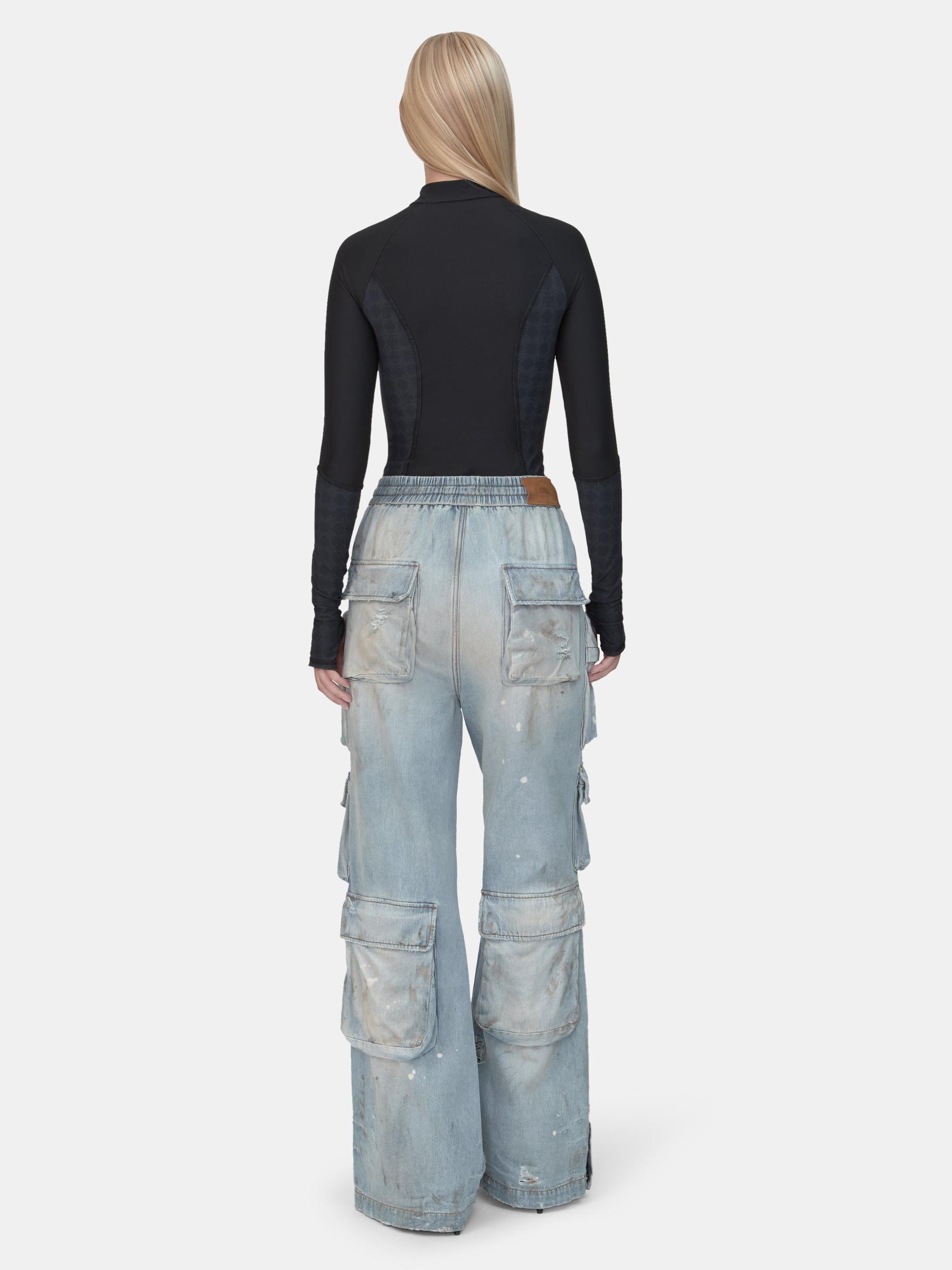 For Pre-Spring 2026, the tactical cargo silhouette is elevated through refinements in form and material. The Cargo Jean is hand-distressed and constructed with cargo pockets, an elastic waistband with drawcord, and snap buttons at the ankle for an adjustable fit. PRE-SPRING 2026 COLLECTION MADE IN Italy 100% COTTONTHIS GARMENT HAS UNDERGONE A SPECIAL PROCESS WHICH RESULTS IN INTENTIONAL VARIATIONS OF SHADING AND COLOR, AND ADD TO THE PIECE'S UNIQUE CHARACTERISTICS. THIS MAY LEAD TO BLEEDING OR DYE TRANSFER. PLEASE USE CAUTION WHEN WASHING OR DRY-CLEANING THIS ITEM
