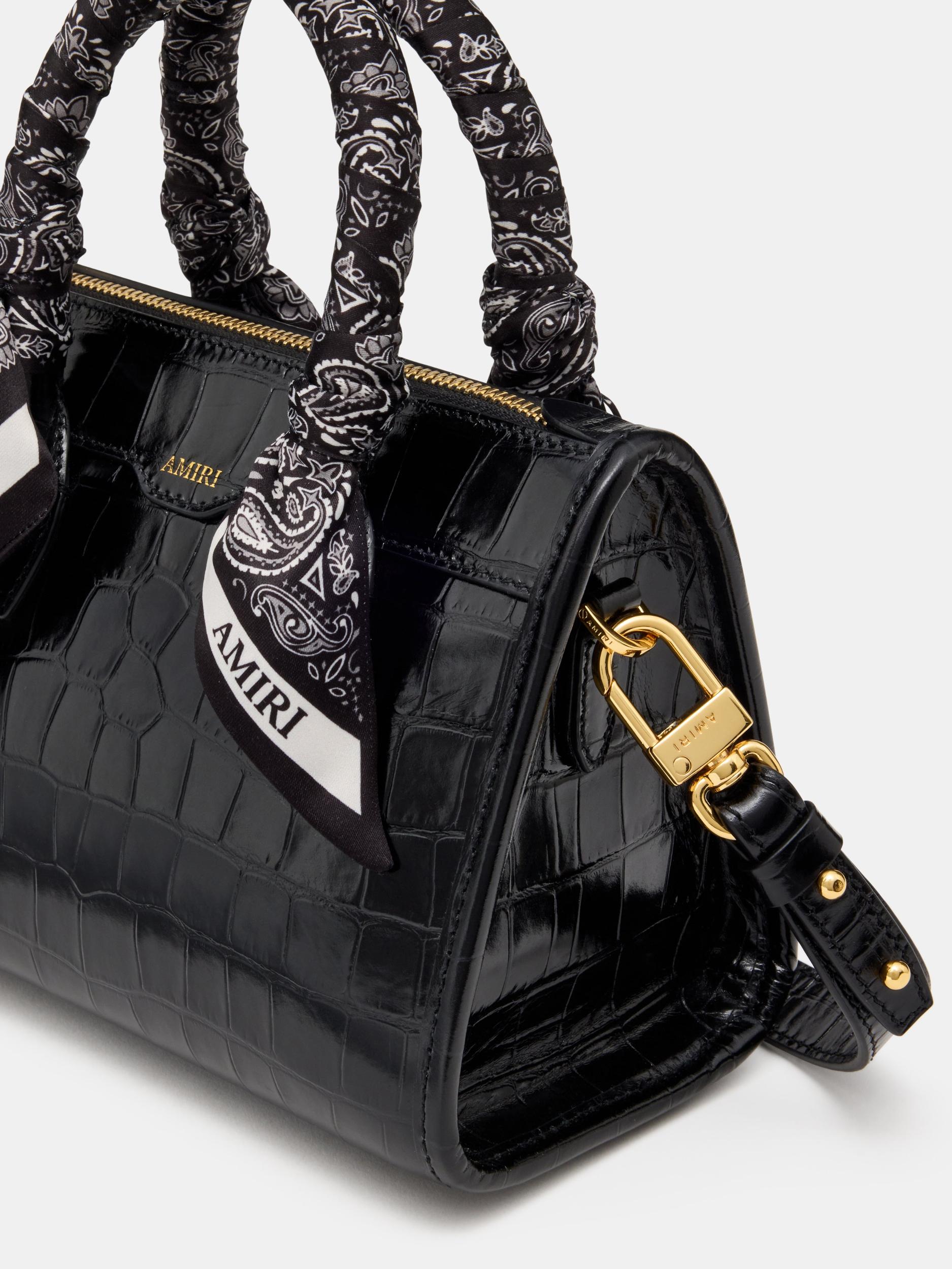 For Autumn-Winter 2025, iconic house accessories are enhanced with tactile croc-embossed leather. The Croc Micro Triangle Bag features top handles with tied paisley scarf accents and a detachable croc-embossed leather shoulder strap. AUTUMN-WINTER 2025 COLLECTION MADE IN Italy 100% LEATHEREACH PIECE IS METICULOUSLY CRAFTED AND INHERENTLY UNIQUE. SLIGHT VARIATIONS IN THE ARTWORK ARE A NATURAL RESULT OF THE PRINTING PROCESS AND CONTRIBUTE TO THE DISTINCTIVE CHARACTER OF THIS PRODUCT.