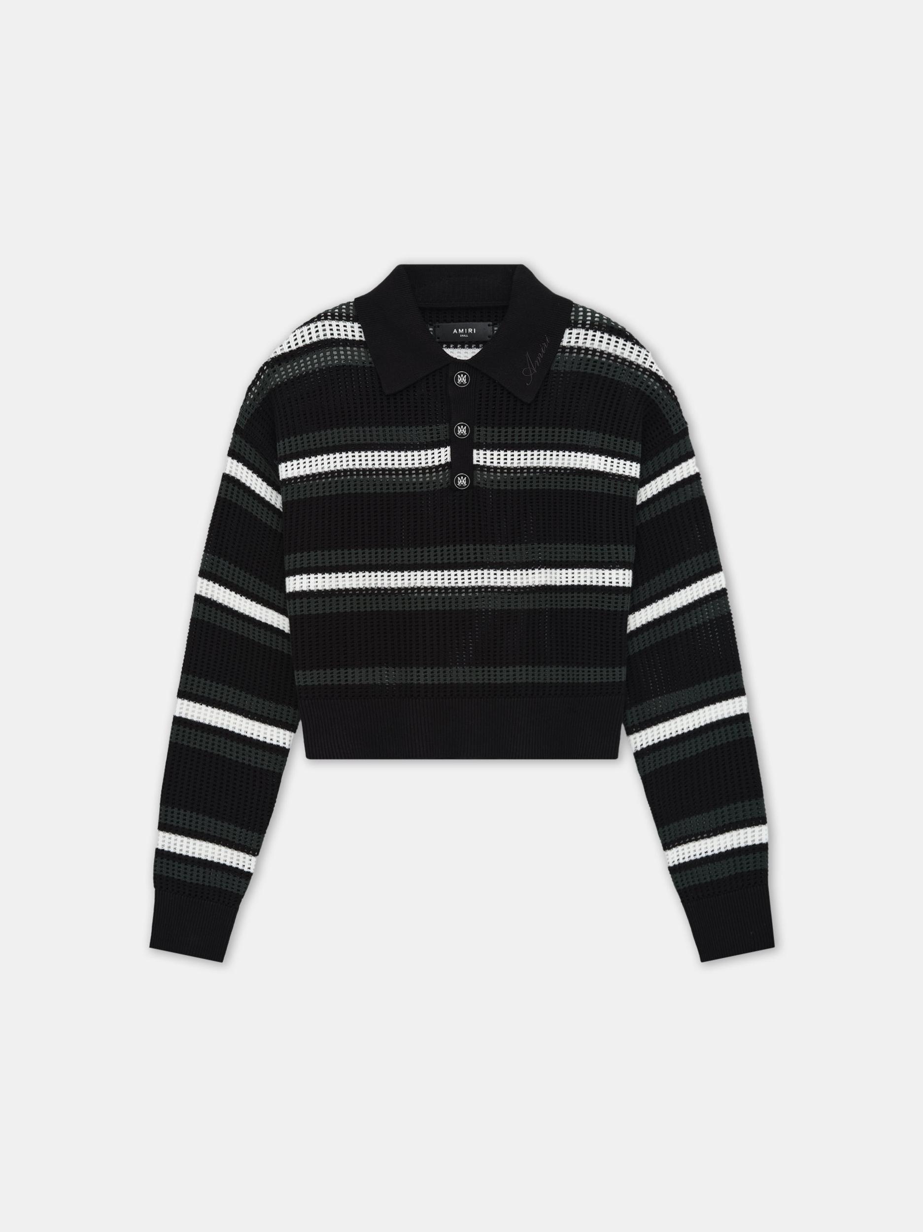 Continuing an exploration of sportswear icons, Pre-Spring 2025 womenswear recasts the time-honored rugby jersey in a newly refined interpretation. The MA Long Sleeve Oversized Polo is crafted in open-knit Egyptian cotton and finished with three-button closure and embroidered script logo on the collar. PRE-SPRING 2025 COLLECTION MADE IN ITALY 100% EGYPTIAN COTTON
