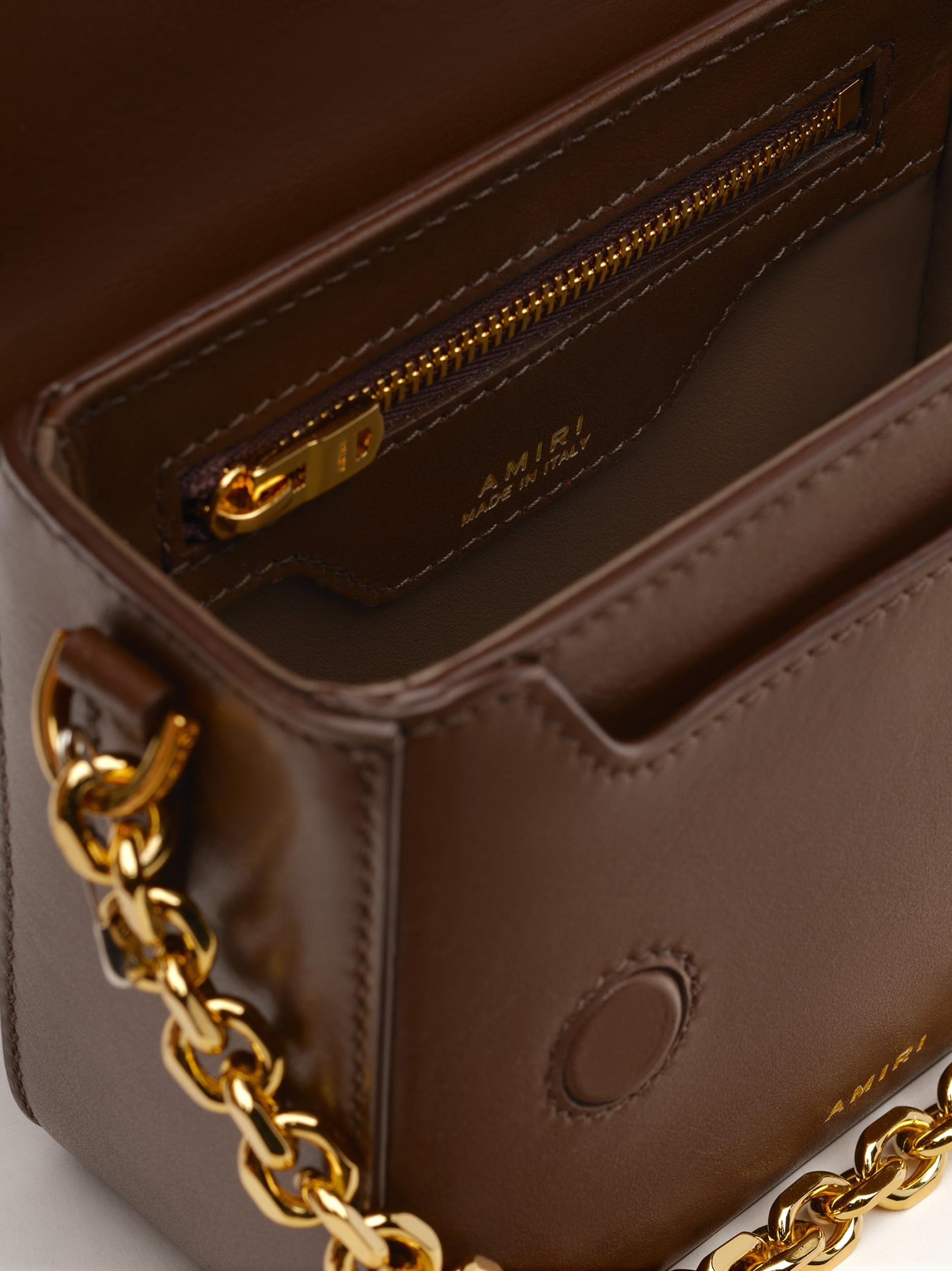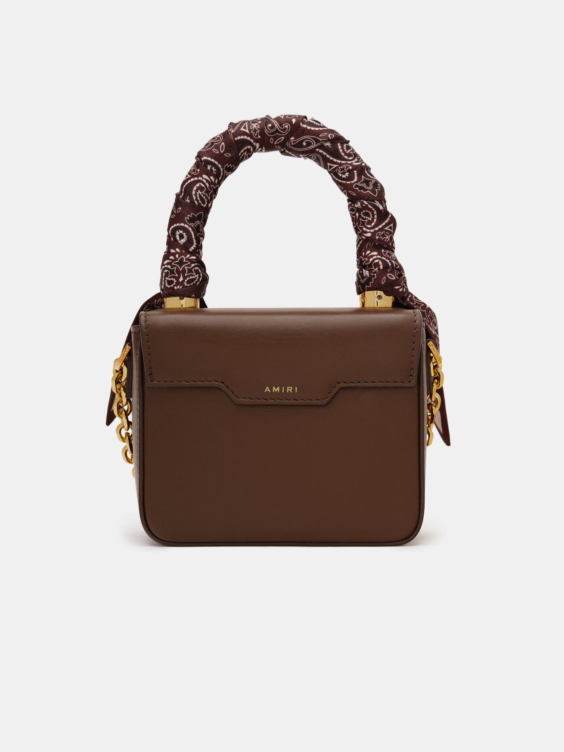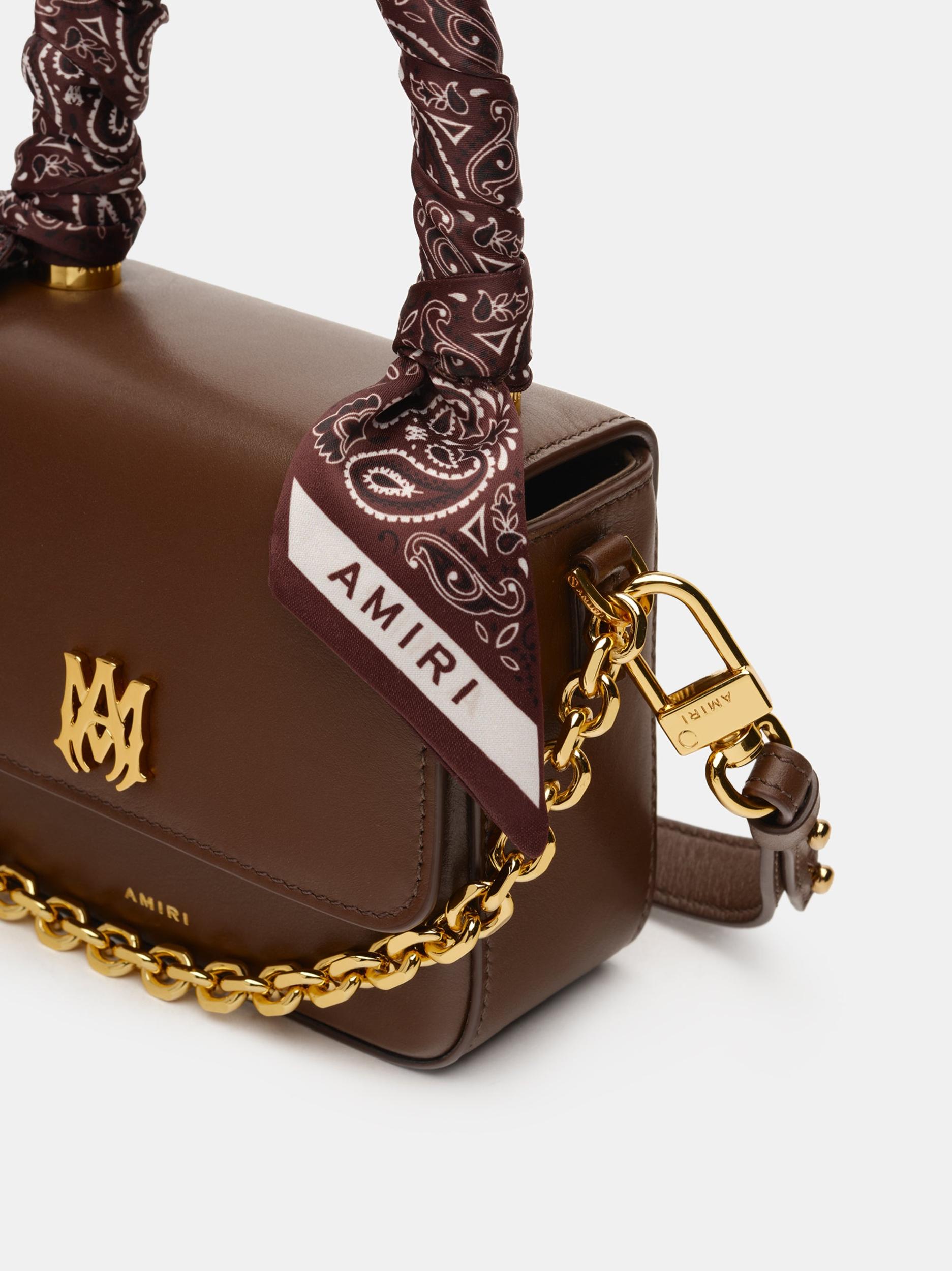 Autumn-Winter 2024 continues to reinvent house icons through explorations in form and material. An instantly recognizable house icon, the leather Micro MA Bag with Chain Handle features magnetic closure, MA icon hardware, a top handle with tied paisley scarf accents, a chain handle, and a detachable leather shoulder strap. AUTUMN-WINTER 2024 COLLECTION MADE IN ITALY 100% LEATHER