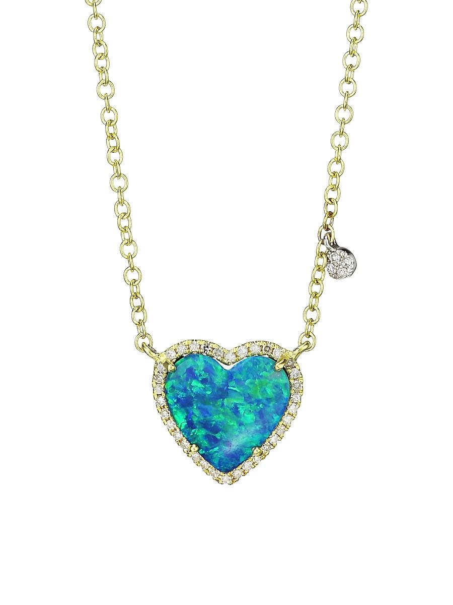 A stunning heart shaped pendant with surrounding diamonds adorn this chain link necklace. 14K yellow gold Diamonds, 0.07 tcw Opal, 0.75 tcw Lobster clasp Imported SIZE Length, about 18. Fashion Jewelry - Fashion Designer > Meira T > Saks Fifth Avenue. Meira T.