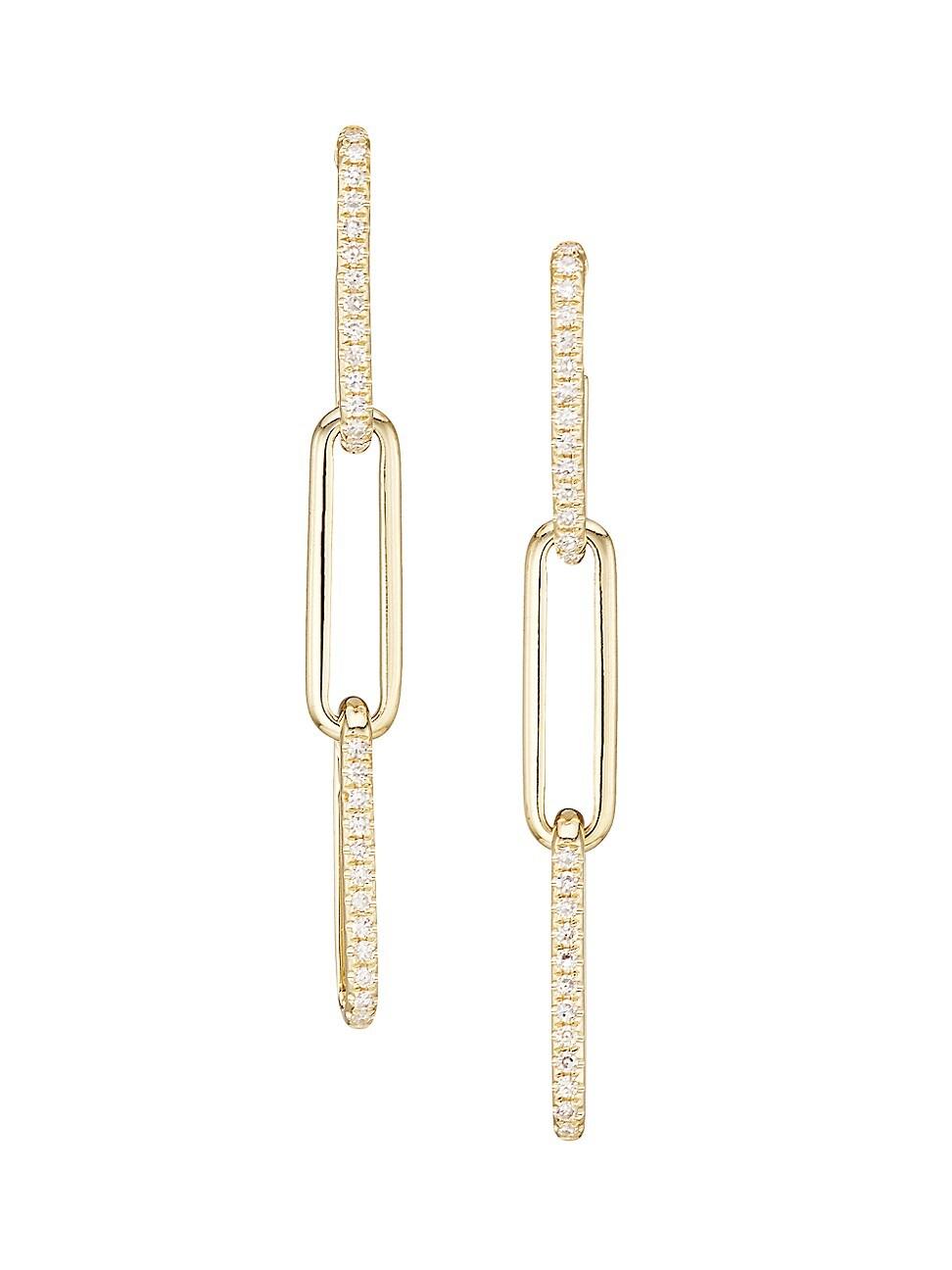 ONLY AT SAKS. Accented with shimmering white diamonds, these elegant drop earrings are composed of 14K gold paperclip links. Diamonds, 0.17 tcw Diamond color: GH Diamond clarity: SII 14K gold Lever back Imported SIZE Drop, about 1.50. Fashion Jewelry - Sfa Jewelry > Saks Fifth Avenue Collection > Saks Fifth Avenue > Barneys. Saks Fifth Avenue Collection. Color: Yellow Gold.