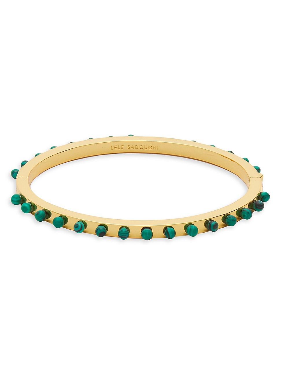 Lele Sadoughis hinged bangle is crafted of 14K gold-plated metal, featuring hand-set faux malachite beads. Green enamel 14K gold-plated metal Hinge clasp Imported SIZE About 2.75 L x 2.5 W. Fashion Jewelry - Trend Jewelry > Lele Sadoughi > Saks Fifth Avenue > Barneys. Lele Sadoughi. Color: Malachite.