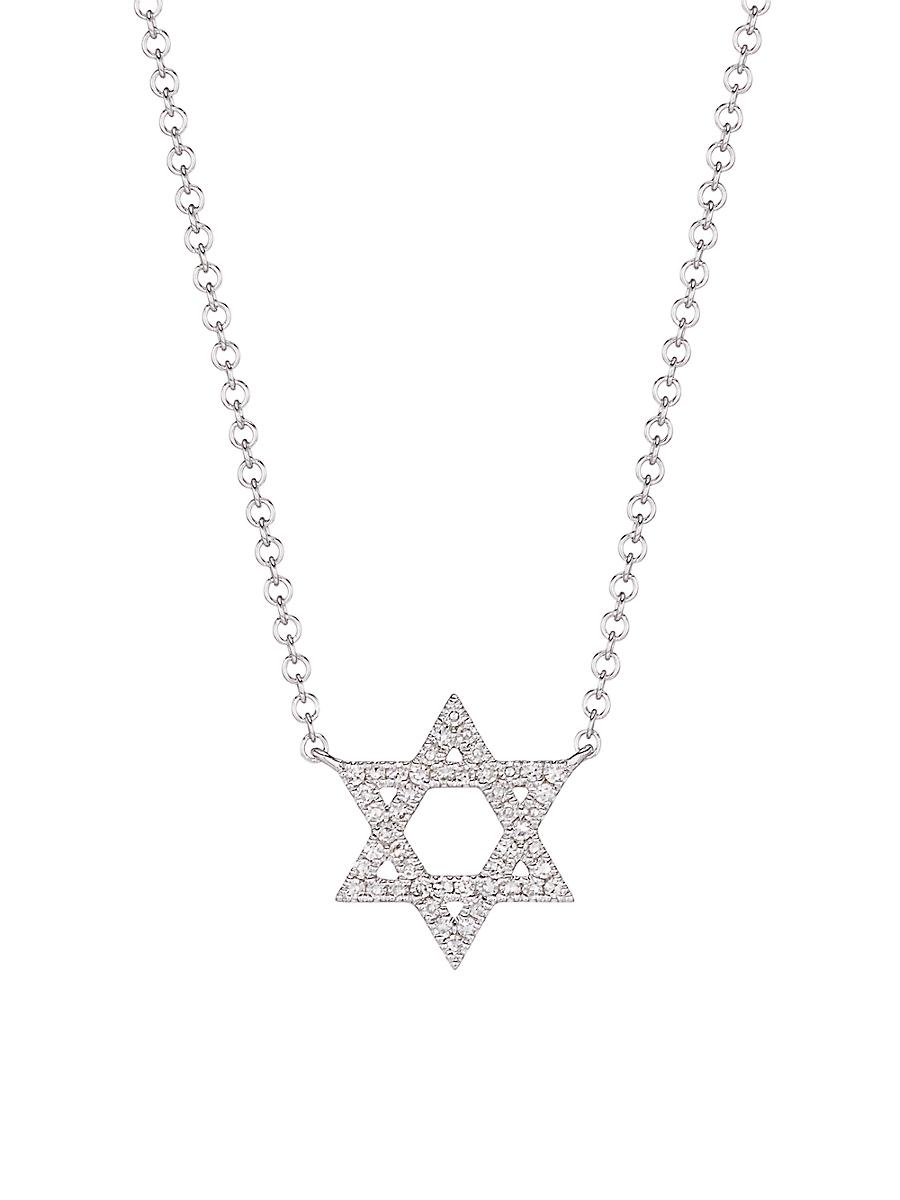 ONLY AT SAKS. Made of 14K gold, this necklace features an exquisite Star of David pendant accented with sparkling white diamonds. Diamonds, 0.11 tcw Diamond color: GH Diamond clarity: SII 14K gold Lobster clasp Imported SIZE Adjustable length up to 18 Pendant length, about 11mm Pendant width, about 10mm. Fashion Jewelry - Sfa Jewelry > Saks Fifth Avenue Collection > Saks Fifth Avenue > Barneys. Saks Fifth Avenue Collection. Color: White Gold.
