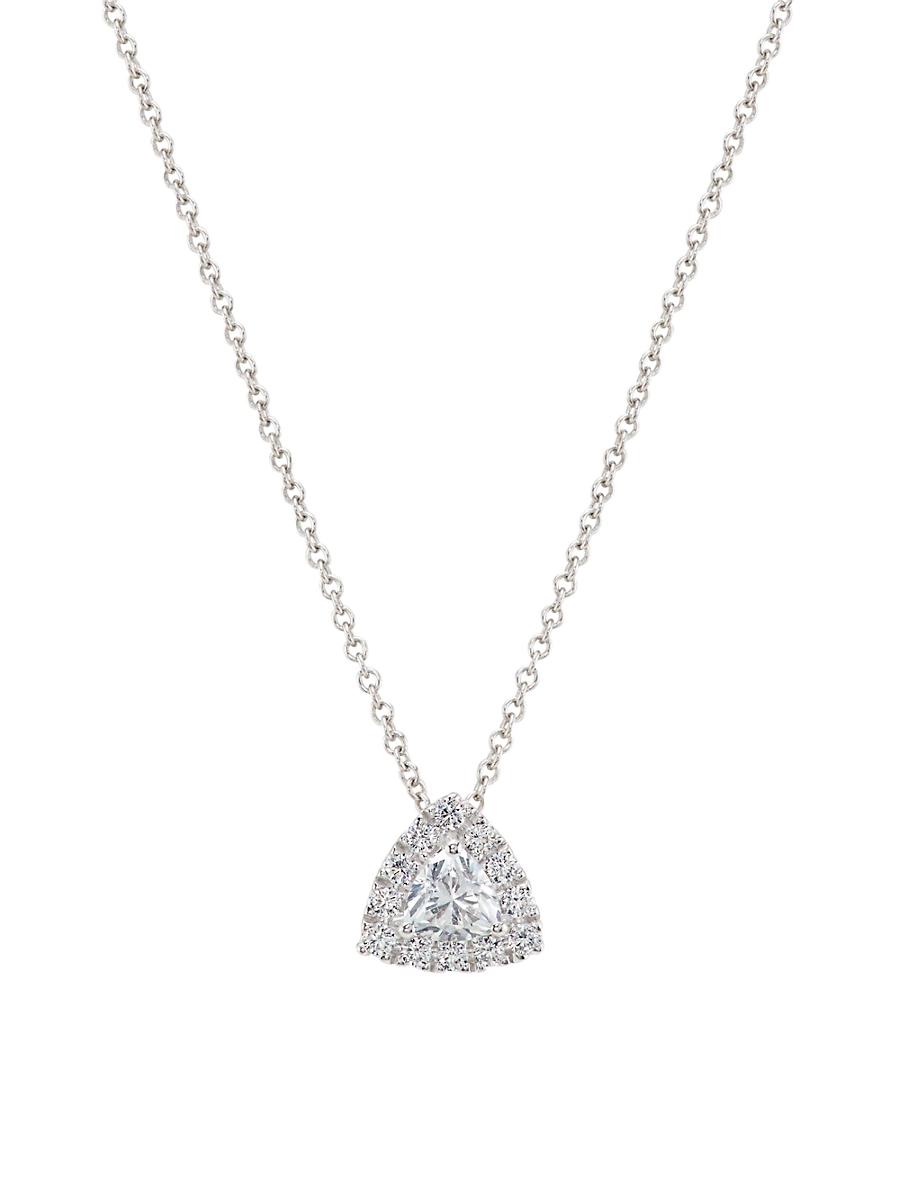 ONLY AT SAKS. Crafted of 14K white gold, Saks Fifth Avenue Collections necklace features a dainty halo pendant that beautifully sparkles with trillion-cut and round lab-grown diamonds. Lab-grown diamonds, 0.34 tcw Diamond color grade: G-H Diamond clarity grade: VS2 14K white gold Post back Imported SIZE Chain: adjustable 16-18L Pendant: about 0.33W x 0.33L. Fashion Jewelry - Lab Grown Sfa C > Saks Fifth Avenue Collection > Saks Fifth Avenue > Barneys. Saks Fifth Avenue Collection. Color: White Gold.
