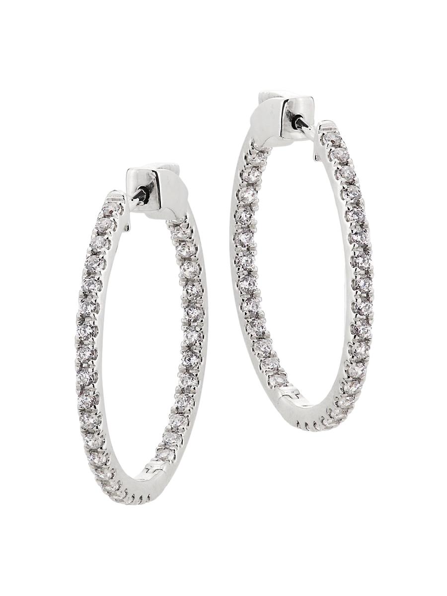 ONLY AT SAKS. Crafted of 14K white gold, Saks Fifth Avenue Collections inside-out hoop earrings sparkle with pav lab-grown diamonds. Lab-grown diamonds, 1.50 tcw Diamond color grade: F-G Diamond clarity grade: VS2 14K white gold Leverback Imported SIZE About 30mm diameter. Fashion Jewelry - Lab Grown Sfa C > Saks Fifth Avenue Collection > Saks Fifth Avenue > Barneys. Saks Fifth Avenue Collection. Color: White Gold.