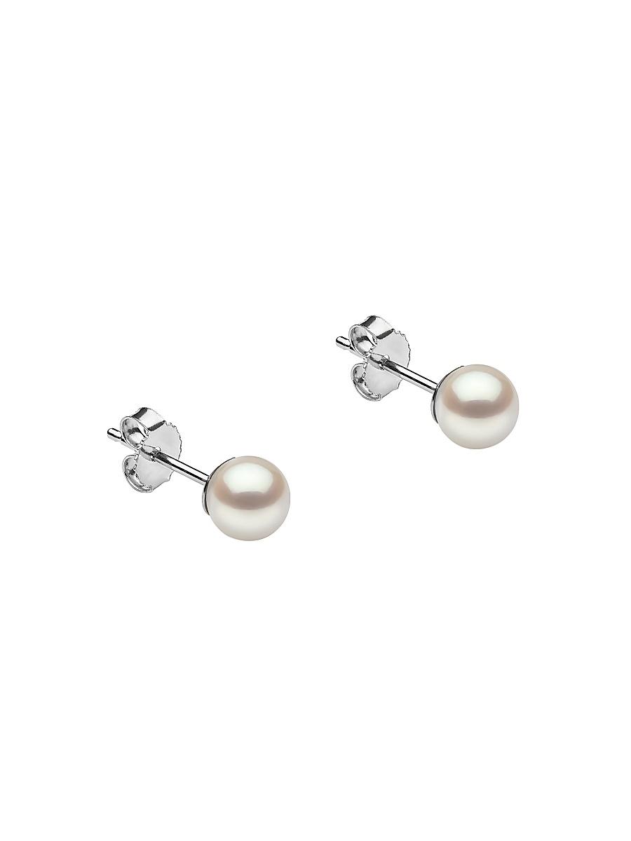 ONLY AT SAKS. Crafted of 14K white gold, these timeless stud earrings feature luminous white round Akoya pearls. Akoya pearls, 6-6.5mm 14K white gold Post back Made in USA. Fashion Jewelry - Sfa Jewelry C > Saks Fifth Avenue Collection > Saks Fifth Avenue. Saks Fifth Avenue Collection. Color: White.