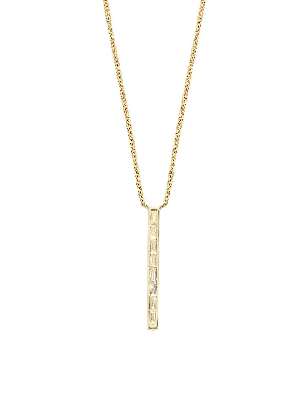 ONLY AT SAKS. Made of 14K yellow gold, Saks Fifth Avenue Collections necklace features a vertical bar pendant channel-set with sparkling baguette diamonds. This elegant embellishment hangs from a fine cable chain. Diamonds, 0.14 tcw Diamond color grade: H-I Diamond clarity grade: SI2-I1 14K yellow gold Lobster clasp Made in USA SIZE Adjustable chain length, about 18. Fashion Jewelry - Sfa Jewelry C > Saks Fifth Avenue Collection > Saks Fifth Avenue > Barneys. Saks Fifth Avenue Collection. Color: Yellow Gold.