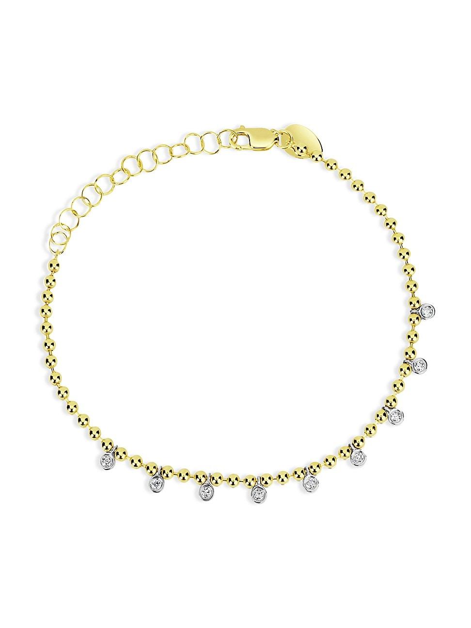 Meira Ts polished bead chain bracelet is crafted of 14K yellow and white gold. This piece is elevated with bezel-set diamond charms. Emerald Diamond,.15 tcw 14K yellow and white gold Lobster clasp Made in Spain SIZE Length, about 7. Fashion Jewelry - Fashion Designer > Meira T > Saks Fifth Avenue > Barneys. Meira T. Color: Yellow Gold.