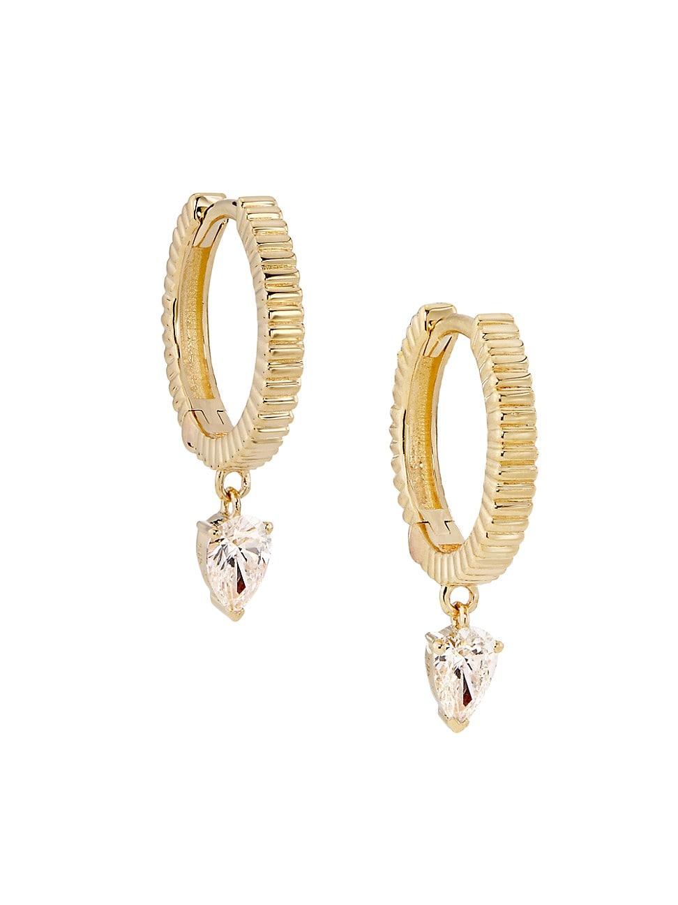ONLY AT SAKS. Crafted of fluted 14K yellow gold, Saks Fifth Avenue Collections dainty huggie hoop earrings are tipped with sparkling pear-cut diamonds. Diamonds, 0.20 tcw Diamond color grade: H-I Diamond clarity grade: VS2 14K yellow gold Leverback Imported SIZE Length: about 0.67 Width: about 2.5mm. Fashion Jewelry - Sfa Jewelry > Saks Fifth Avenue Collection > Saks Fifth Avenue > Barneys. Saks Fifth Avenue Collection. Color: Yellow Gold.