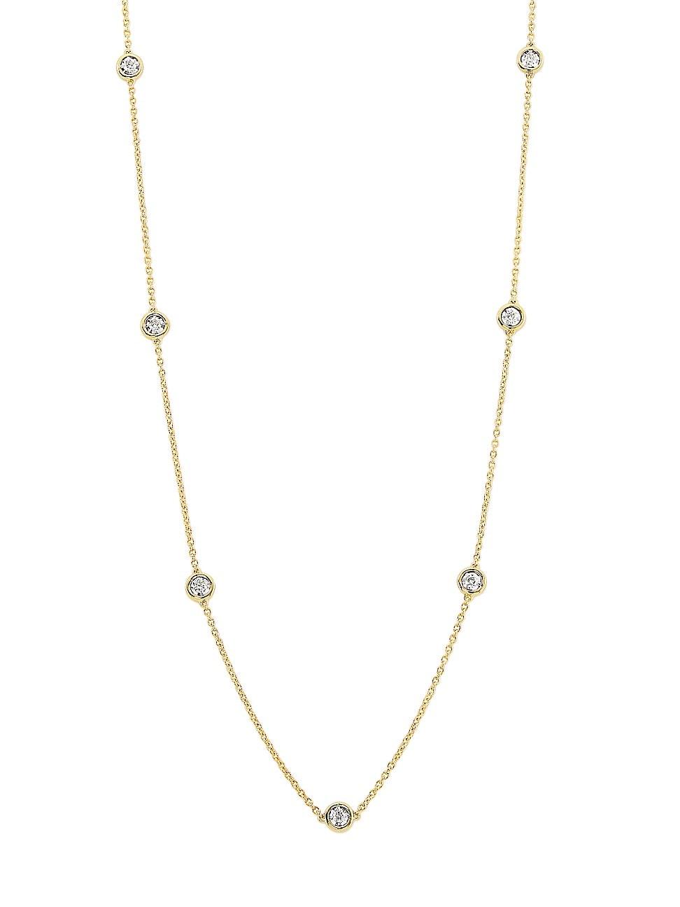 Saks Fifth Avenue Collections 14K-yellow-gold necklace features stations of shimmering round diamonds on a delicate chain. Diamond, 0.25 tcw Diamond color: H-one Diamond clarity: Si2-i1 14K yellow gold Lobster clasp Made in the USA SIZE Length, about 18. Fashion Jewelry - Sfa Jewelry C > Saks Fifth Avenue Collection > Saks Fifth Avenue > Barneys. Saks Fifth Avenue Collection. Color: Yellow Gold.