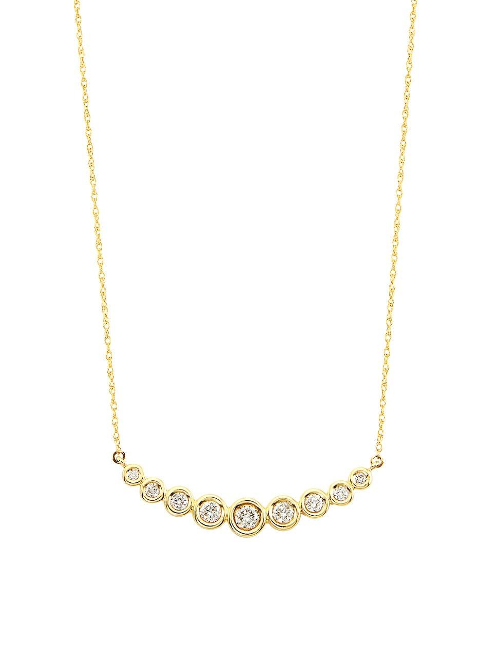 ONLY AT SAKS. Crafted of 14K yellow gold, Saks Fifth Avenue Collections necklace features a curved bar pendant embellished with graduated round bezel-set diamonds. Diamonds, 0.5 tcw Diamond color grade: H-I Diamond clarity grade: SI2-I1 14K yellow gold Spring-ring clasp Made in USA SIZE Chain length, about 18. Fashion Jewelry - Sfa Jewelry C > Saks Fifth Avenue Collection > Saks Fifth Avenue > Barneys. Saks Fifth Avenue Collection. Color: Yellow Gold.