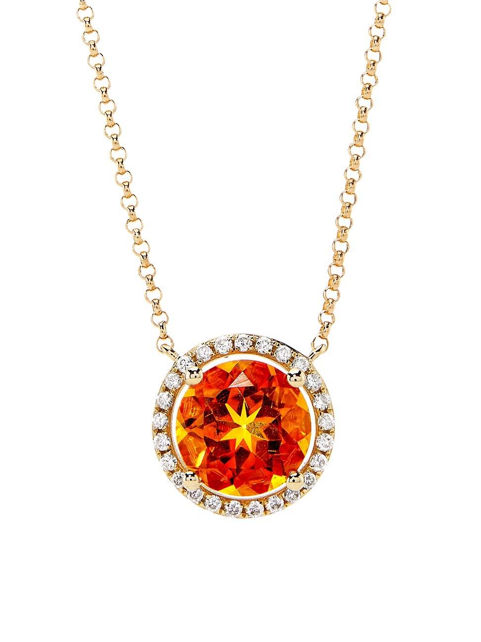 ONLY AT SAKS. Crafted of 14K yellow gold, Saks Fifth Avenue Collections necklace features a round halo pendant set with a vibrant citrine and glittering pav diamonds. Diamonds, 0.14 tcw Diamond color grade: H-I Diamond clarity grade: SI2-I1 Citrine 14K yellow gold Lobster clasp Made in USA SIZE Chain: about 18L. Fashion Jewelry - Sfa Jewelry C > Saks Fifth Avenue Collection > Saks Fifth Avenue > Barneys. Saks Fifth Avenue Collection. Color: Gold.