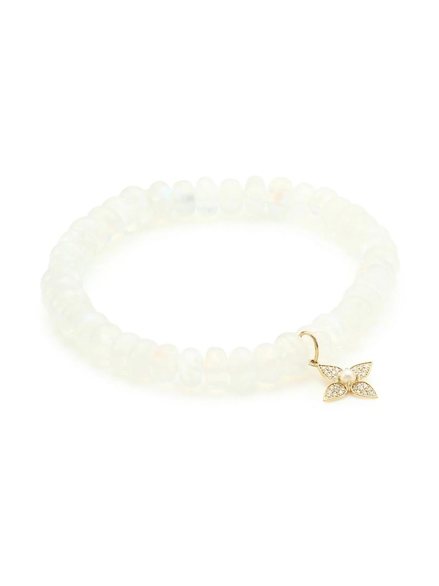 Delicate rainbow moonstone bead bracelet with diamond & pearl-accented flower charm. Diamonds, 0.089 tcw Pearls, 2.5mm 14K yellow gold Slip-on style Wipe clean Imported SIZE Length, about 6.25 Pendant, 0.5W x 0.5H. Fashion Jewelry - Fashion Designer > Sydney Evan > Saks Fifth Avenue > Barneys. Sydney Evan. Color: Yellow.