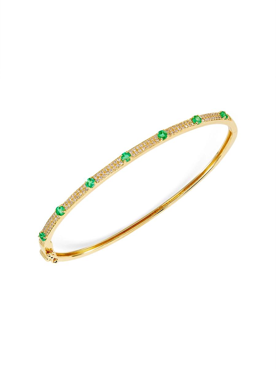 Crafted of 14K yellow gold, this elegant bangle from Saks Fifth Avenue Collection sparkles with vibrant round emeralds and pav diamonds. Natural diamonds, 0.50 tcw Emeralds 14K yellow gold Box clasp with safety latch Imported SIZE Diameter: about 2.5 Width: about 2.5mm. Fashion Jewelry - Sfa Jewelry > Saks Fifth Avenue Collection > Saks Fifth Avenue > Barneys. Saks Fifth Avenue Collection. Color: Gold.