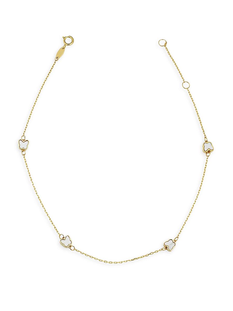 Let our Flutter By Anklet be a constant reminder of natures beauty. The gorgeous shape of the butterflys wings, the opalescent glow of mother of pearl and the high shine of solid gold all come together in this special piece. 14k yellow gold Mother of pearl Made in Italy SIZE Length, about 9-10. Lsd Jewelry - Jewelry Lsd Mp > Oradina > Saks Fifth Avenue > Barneys. Oradina. Color: Yellow Gold.