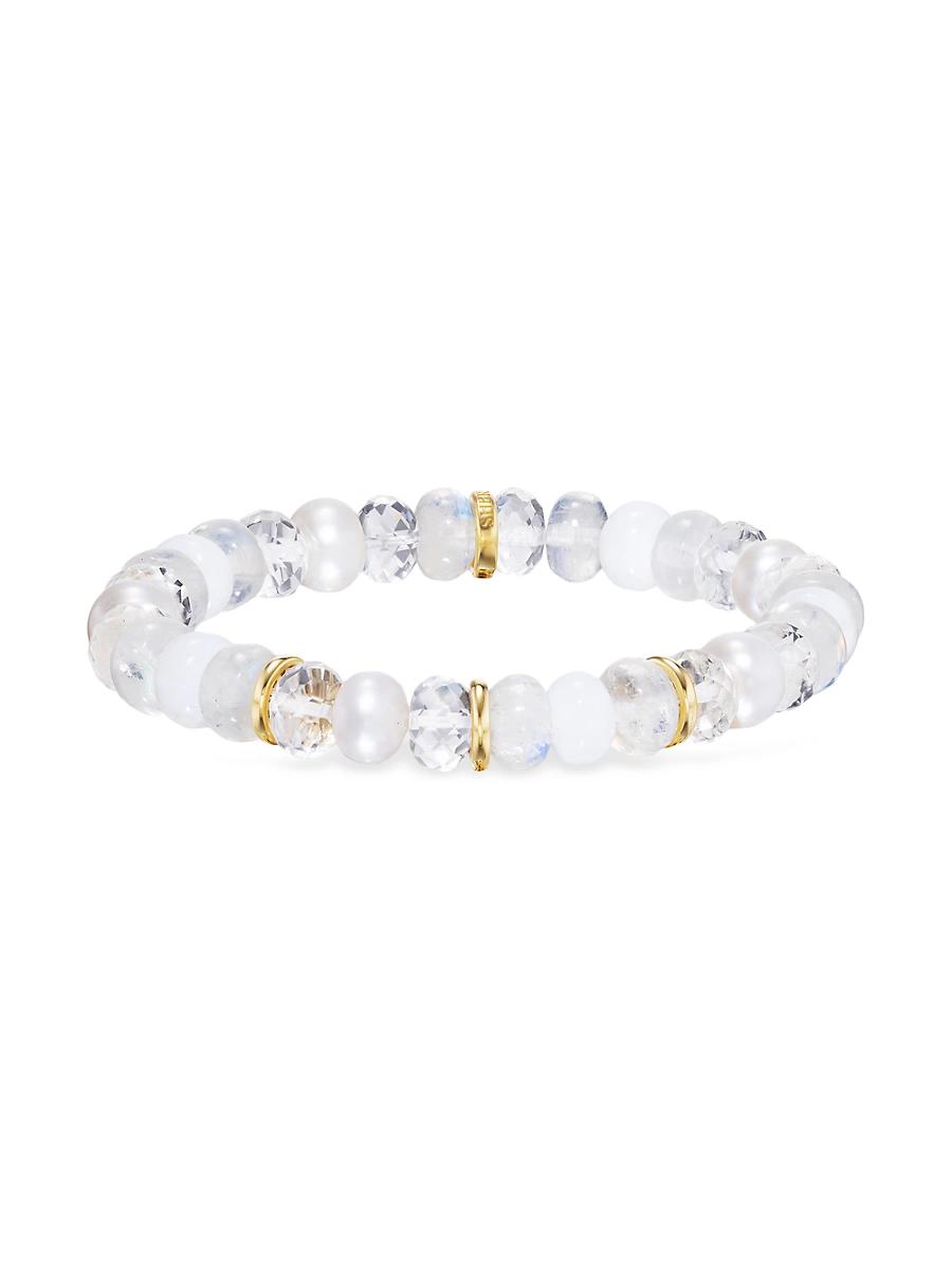 Made by hand, this beaded bracelet from Sheryl Lowe features tonal mixed gemstones set with 14K yellow gold rondelle beads. Rainbow moonstone Crystal quartz Cultured pearls, 8mm White opal 14K yellow gold Slips on Made in USA SIZE About 7.25L. Fashion Jewelry - Fashion Designer > Sheryl Lowe > Saks Fifth Avenue > Barneys. Sheryl Lowe. Color: Gold.