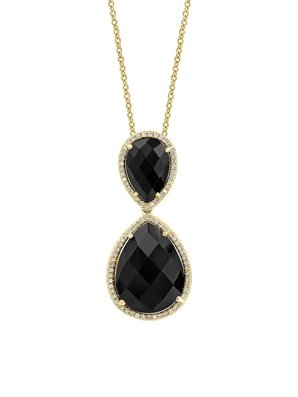 ONLY AT SAKS. Saks Fifth Avenue Collections 14K-yellow-gold necklace features two shimmering teardrop onyx pendants suspended from a fine cable chain. Showcasing a rose cut, these striking gemstones are bordered by a halo of pav diamonds. Diamonds, 0.24 tcw Diamond color grade: H-I Diamond clarity grade: I1 Onyx 14K yellow gold Lobster clasp Made in USA SIZE Chain: about 18L Pendant: about 1.42L. Fashion Jewelry - Sfa Jewelry C > Saks Fifth Avenue Collection > Saks Fifth Avenue > Barneys. Saks Fifth Avenue Collection. Color: Gold Black.