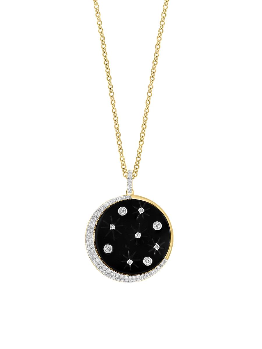 ONLY AT SAKS. Made of 14K yellow gold, Saks Fifth Avenue Collections necklace features a stunning onyx-inlaid pendant accented with shimmering diamonds. Diamonds, 0.43 tcw Diamond color grade: H-I Diamond clarity grade: I1 14K yellow gold Lobster clasp Made in USA SIZE Chain: about 18L Pendant: about 1.12L. Fashion Jewelry - Sfa Jewelry C > Saks Fifth Avenue Collection > Saks Fifth Avenue > Barneys. Saks Fifth Avenue Collection.