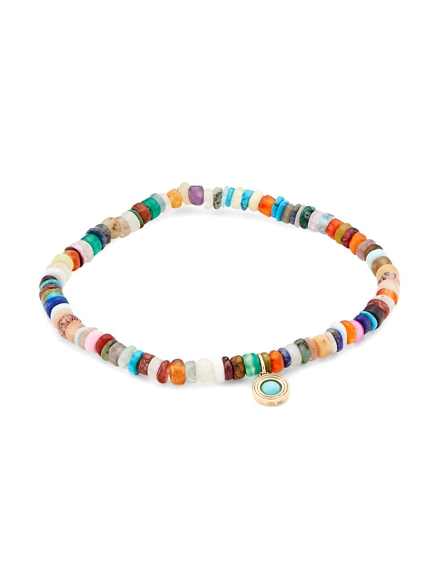 Threaded with vibrant rainbow heishi beads, Sydney Evans stretch bracelet features a fluted 14K-yellow-gold charm set with a radiant blue turquoise cabochon. Turquoise cabochon, 0.15 tcw Rainbow heishi beads 14K yellow gold Slips on Imported SIZE About 6.25 circumference. Fashion Jewelry - Fashion Designer > Sydney Evan > Saks Fifth Avenue > Barneys. Sydney Evan. Color: Rainbow.