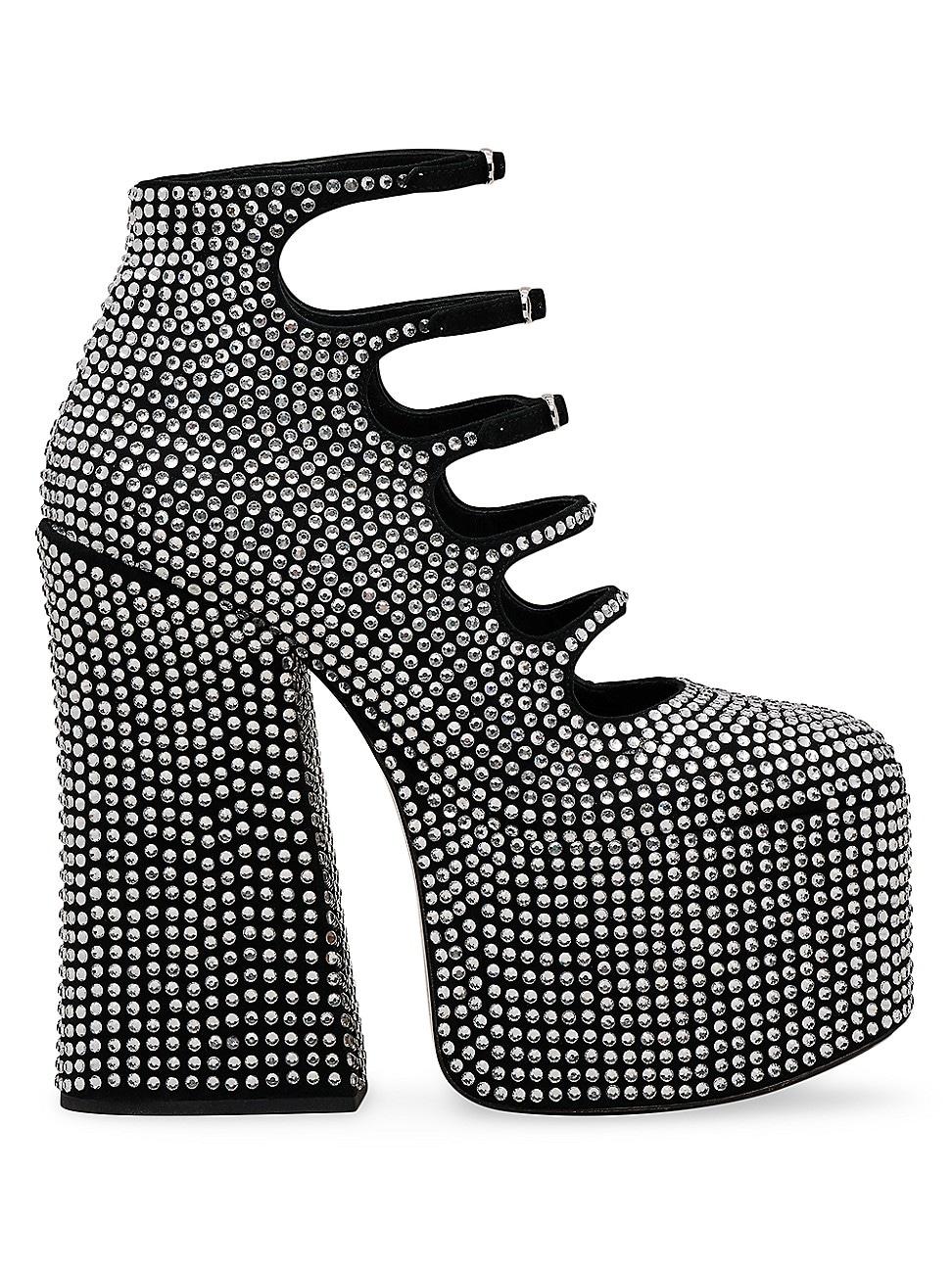 Set on a sky-high platform and block heel, the Kiki booties from Marc Jacobs are embellished with sparkling crystals. Round toe Adjustable buckle closure Suede/rhinestone upper Leather sole Imported SIZE Block heel: about 6.25 (160mm). Womens Shoes - Workshop Shoes > Marc Jacobs > Saks Fifth Avenue > Barneys. Marc Jacobs. Color: Black Crystal. Size: 6.