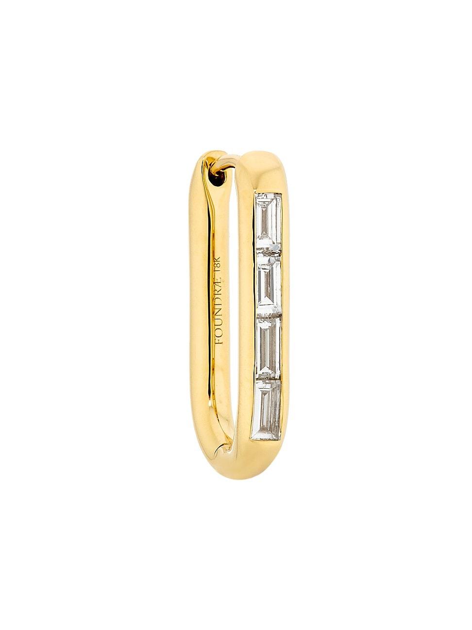 Foundraes chic oval link earring is handcrafted of 18K yellow gold channel-set with four sparkling baguette diamonds. Sold as a single earring Diamonds, 0.30 tcw 18K yellow gold Leverback Made in USA SIZE About 0.75L ABOUT THE BRAND Foundrae takes inspiration from mythology and classical design to create elevated-yet-approachable necklaces, bracelets, rings and more-all in 18-karat gold. The fine jewelry label is known for its use of ancient symbols in its signature coin-like pendants, which blend a bold look with second-skin comfort. Each piece is a collectible in its own right and serves as an expression of personal identity. Fine Jewelry - Designer Jewelry A > Foundrae > Saks Fifth Avenue > Barneys. Foundrae. Color: Yellow Gold.