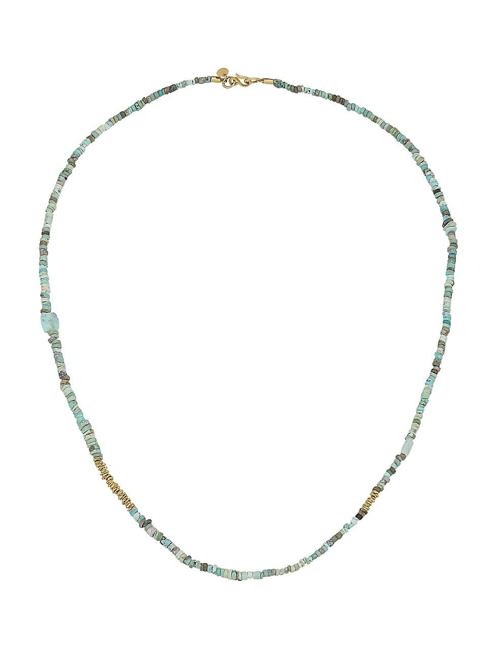 Threaded with vibrant turquoise beads, Eli Halilis slender necklace is accented with a row of 22K-yellow-gold discs. Turquoise 22K yellow gold S-clasp Made in USA SIZE Length, about 23. Fashion Jewelry - Fashion Designer > Eli Halili > Saks Fifth Avenue > Barneys. Eli Halili. Color: Yellow Gold.