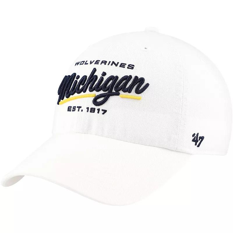 Designed by 47, this Sidney Clean Up hat is ready to help you cheer your Michigan Wolverines to victory. An adjustable closure and relaxed construction pair for a comfortable fit and feel. Bold Michigan Wolverines embroidery featuring the franchises establishing year spotlights your devotion.Designed by 47, this Sidney Clean Up hat is ready to help you cheer your Michigan Wolverines to victory. An adjustable closure and relaxed construction pair for a comfortable fit and feel. Bold Michigan Wolverines embroidery featuring the franchises establishing year spotlights your devotion.PRODUCT FEATURESMaterial: 100% CottonUnstructured relaxed fitImportedOfficially licensedWipe clean with a damp clothAdjustable fabric strap with snap buckleEmbroidered graphics with raised detailsWoven clip tagLow CrownCurved billSix panels with eyeletsOne size fits mostBrand: 47 Size: One Size. Color: White. Gender: female. Age Group: adult.