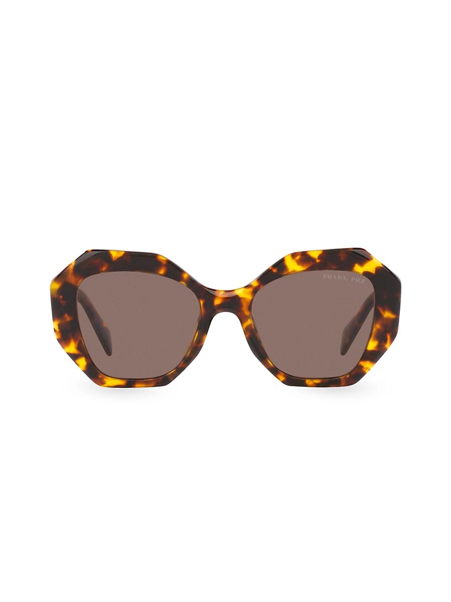 Pradas sleek acetate sunglasses are cut in a geometric shape with a logo signature at the temple. UV protection Solid lenses Case and cleaning cloth included Nylon/acetate Made in Italy SIZE 53mm lens width 18mm bridge width 140mm temple length ABOUT THE BRAND Since 1913, Prada has been synonymous with cutting-edge style. Its intellectual universe combines concept, structure and image through codes that go beyond trends. Focusing on experimentation, its fashion has become a benchmark to those who challenge conventions. Soft Accessories - Sunglasses > Prada > Saks Fifth Avenue > Barneys. Prada. Color: Tortoise.
